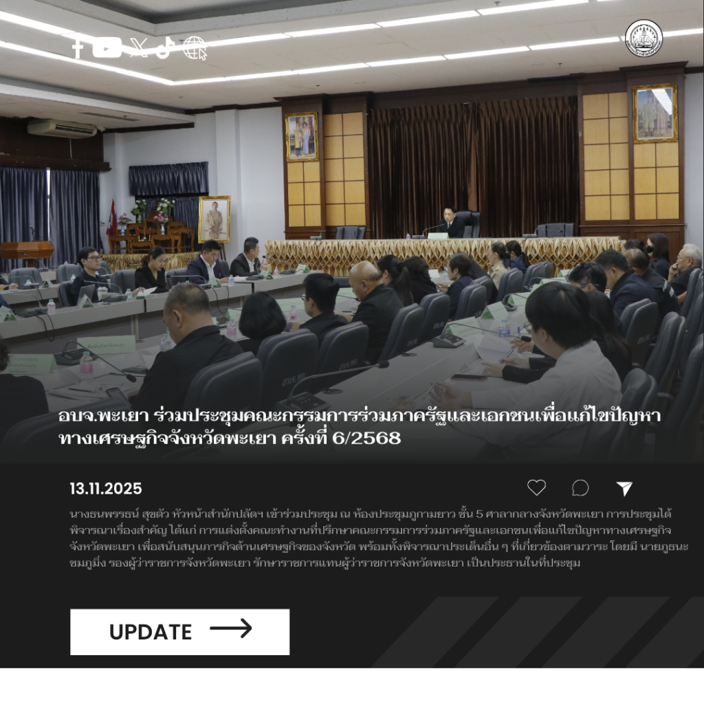 อบจ.พะเยา ร่วมประชุมคณะกรรมการร่วมภาครัฐและเอกชนเพื่อแก้ไขปัญหาทางเศรษฐกิจจังหวัดพะเยา ครั้งที่ 6/2568