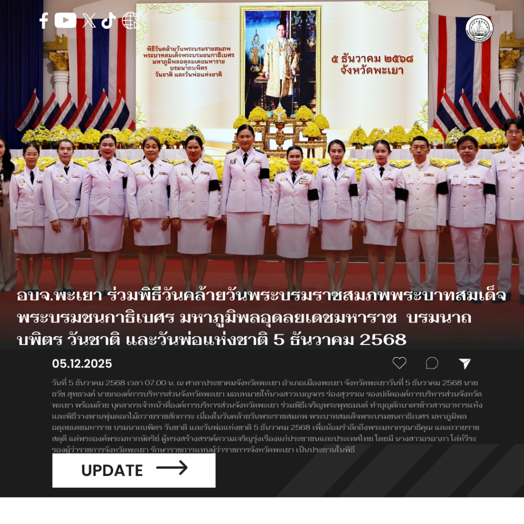 องค์การบริหารส่วนจังหวัดพะเยา ร่วมพิธีวันคล้ายวันพระบรมราชสมภพพระบาทสมเด็จพระบรมชนกาธิเบศร มหาภูมิพลอุดลยเดชมหาราชบรมนาถบพิตร วันชาติ และวันพ่อแห่งชาติ 5 ธันวาคม 2568