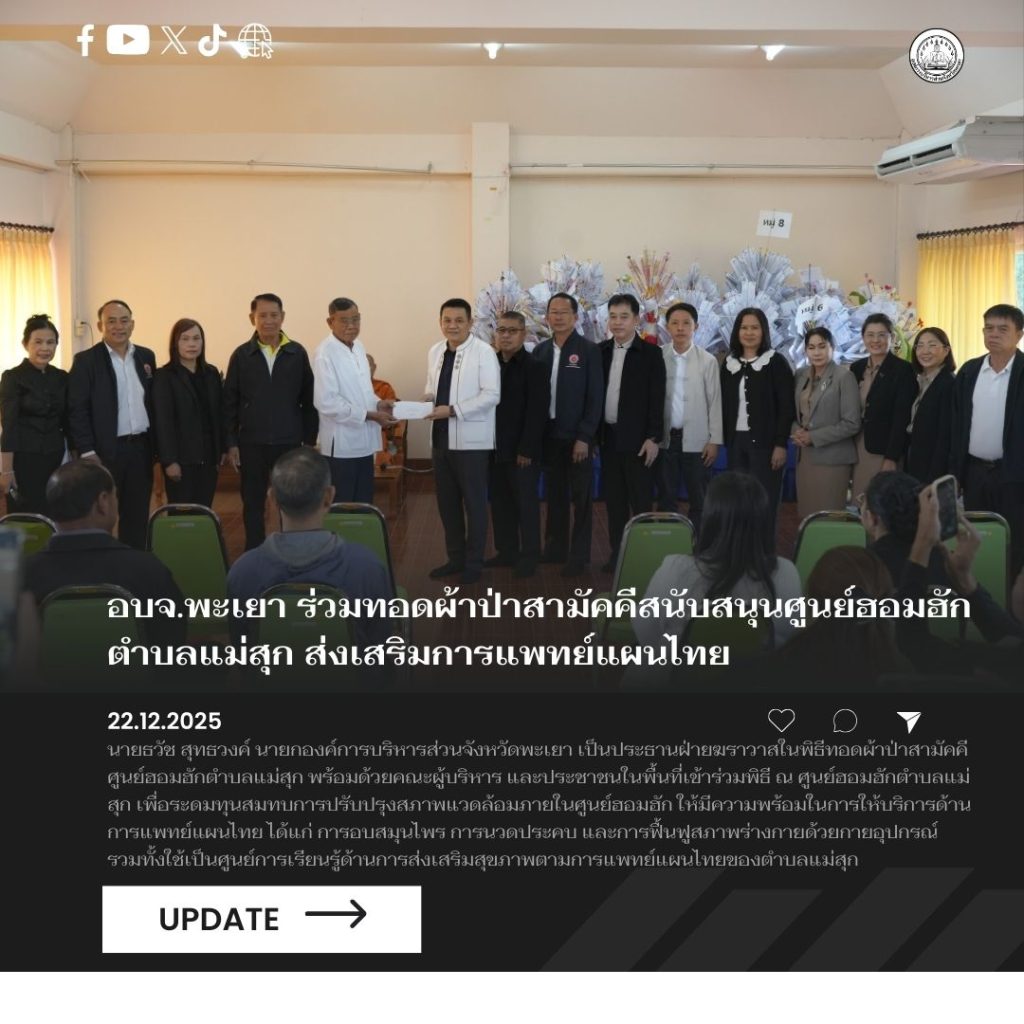 อบจ.พะเยา ร่วมทอดผ้าป่าสามัคคีสนับสนุนศูนย์ฮอมฮักตำบลแม่สุก ส่งเสริมการแพทย์แผนไทย Read More »