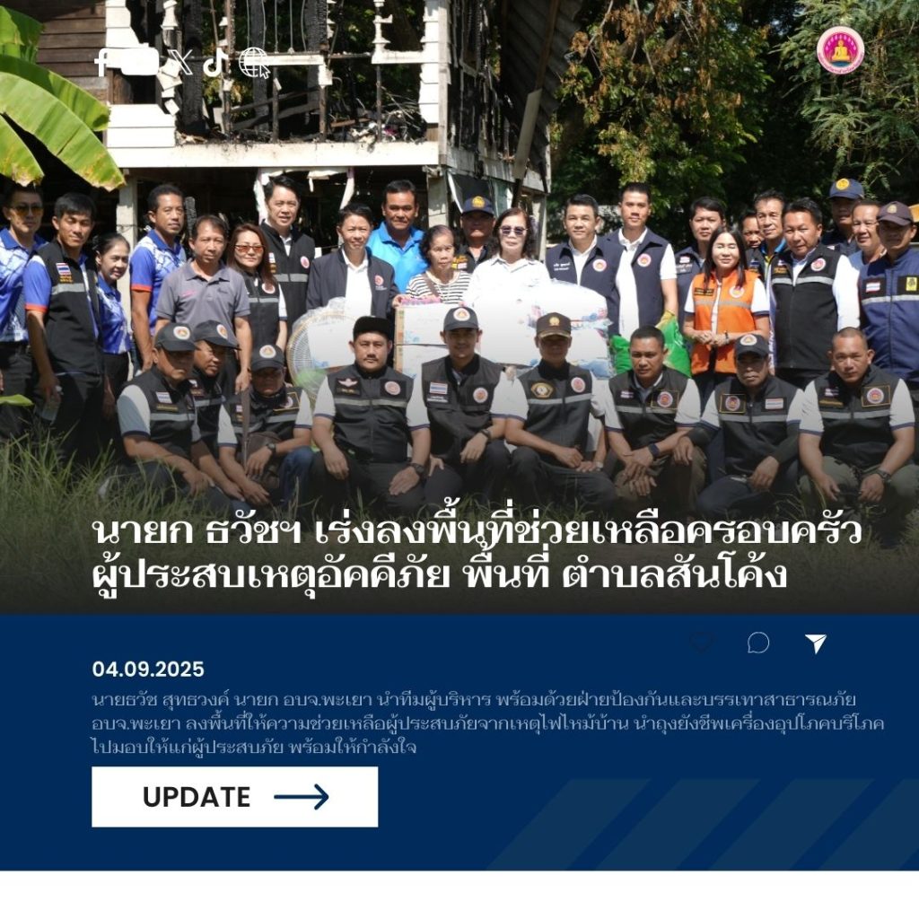 วันที่ 4 กันยายน 2568 นายธวัช สุทธวงค์ นายกองค์การบริหารส่วนจังหวัดพะเยา นำทีมคณะผู้บริหาร พร้อมด้วย นายสยาม ปรีชา ปลัดองค์การบริหารส่วนจังหวัดพะเยา พร้อมทีมป้องกันและบรรเทาสาธารณภัยสำนักปลัด องค์การบริหารส่วนจังหวัดพะเยา ลงพื้นที่ให้ความช่วยเหลือผู้ประสบภัยจากเหตุไฟไหม้บ้าน นางแสงวรณ์ ธรรมสอน บ้านเลขที่ 211 หมู่ที่ 2 ตำบลสันโค้ง อำเภอดอกคำใต้ จังหวัดพะเยา ได้นำถุงยังชีพเครื่องอุปโภคบริโภคไปมอบให้แก่ผู้ประสบภัย พร้อมให้กำลังใจ และประสานหน่วยงานที่เกี่ยวข้อง รวมถึงผู้นำชุมชน เพื่อให้ความช่วยเหลือเบื้องต้น และสำรวจความเสียหายเพื่อดำเนินการเยียวยาอย่างเหมาะสม