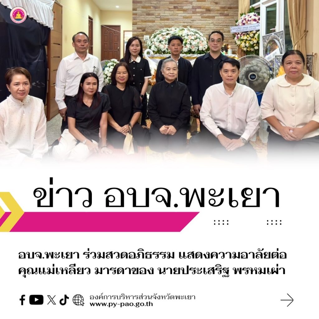 วันที่ 11 สิงหาคม 2568 คณะผู้บริหาร พร้อมด้วย นายสยาม ปรีชา ปลัดองค์การบริหารส่วนจังหวัดพะเยาหัวหน้าส่วนราชการ และบุคลากร อบจ.พะเยา ร่วมพิธีสวดพระอภิธรรมศพ คุณแม่เหลียว พรหมเผ่า มารดาของนายประเสริฐ พรหมเผ่า ตำแหน่ง นักจัดการงานทั่วไปชำนาญการ สำนักงานเลขานุการอบจ. ณ บ้านเลขที่ 8/2 หมู่ที่ 6 ตำบลบ้านใหม่ อำเภอเมืองพะเยา จังหวัดพะเยา