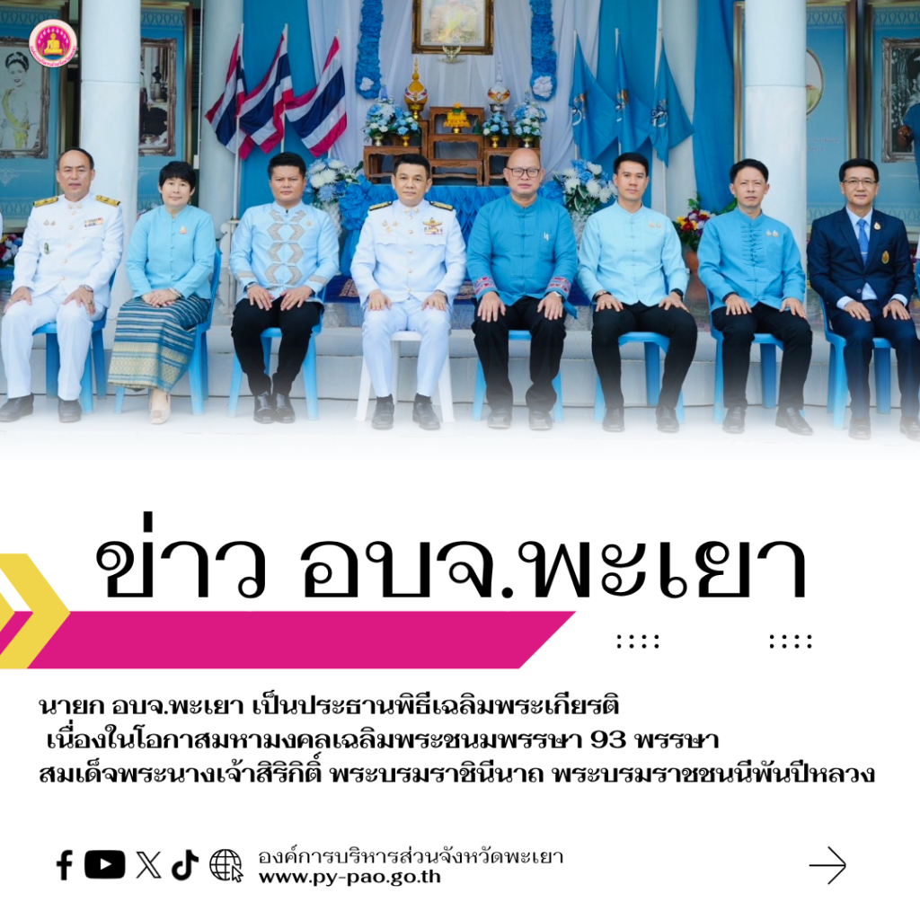 วันที่ 12 สิงหาคม 2568 นายธวัช สุทธวงค์ นายกองค์การบริหารส่วนจังหวัดพะเยา เป็นประธานในพิธีเปิดกิจกรรมพิธีเฉลิมพระเกียรติ เนื่องในโอกาสมหามงคลเฉลิมพระชนมพรรษา 93 พรรษา