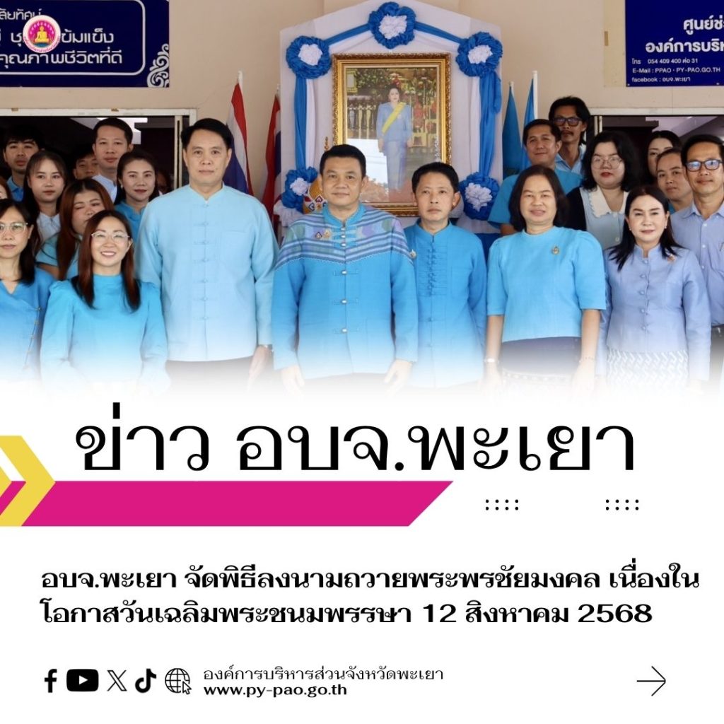 อบจ.พะเยา จัดพิธีลงนามถวายพระพรชัยมงคล เนื่องในโอกาสวันเฉลิมพระชนมพรรษา 12 สิงหาคม 2568 Read More »