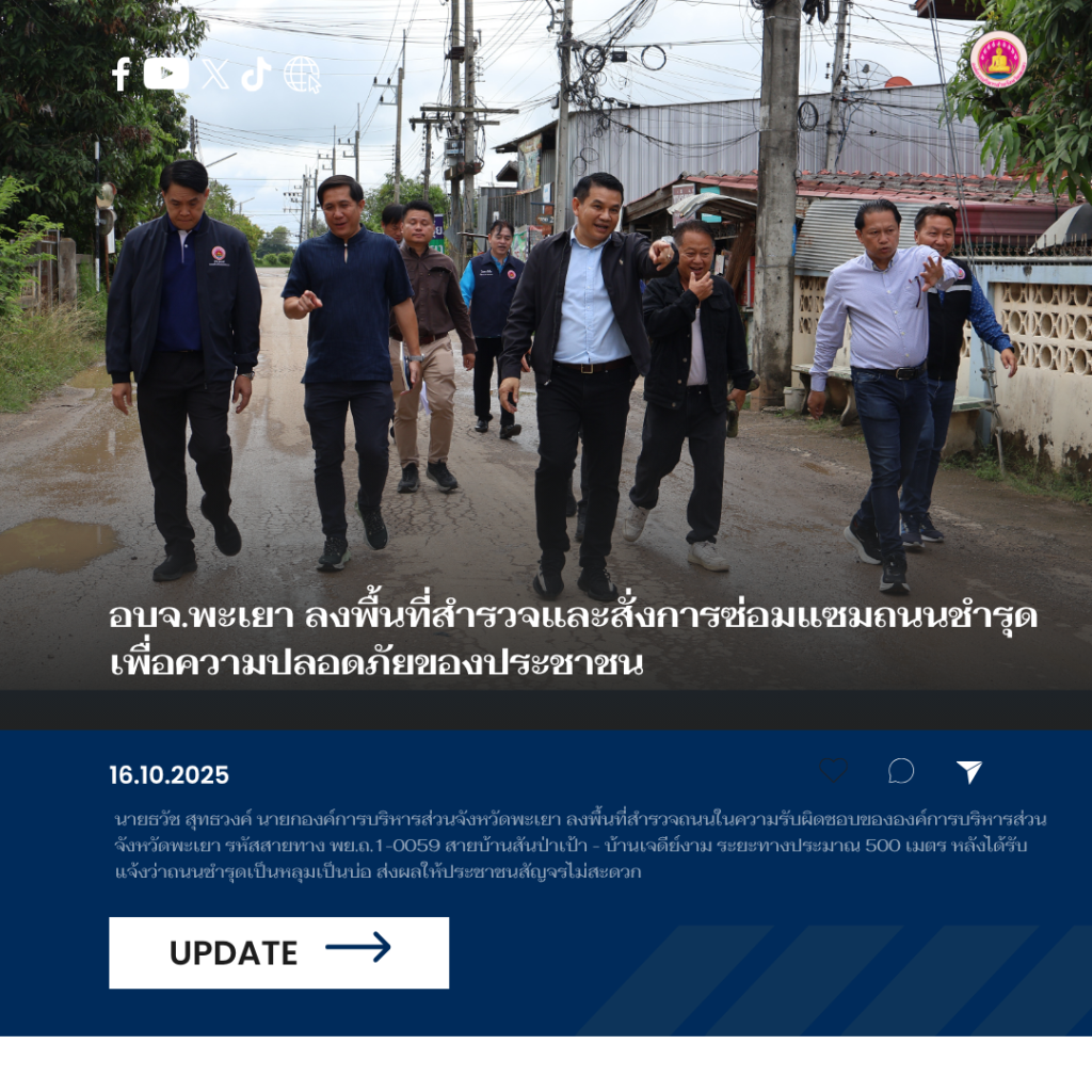 อบจ.พะเยา ลงพื้นที่สำรวจและสั่งการซ่อมแซมถนนชำรุด เพื่อความปลอดภัยของประชาชน