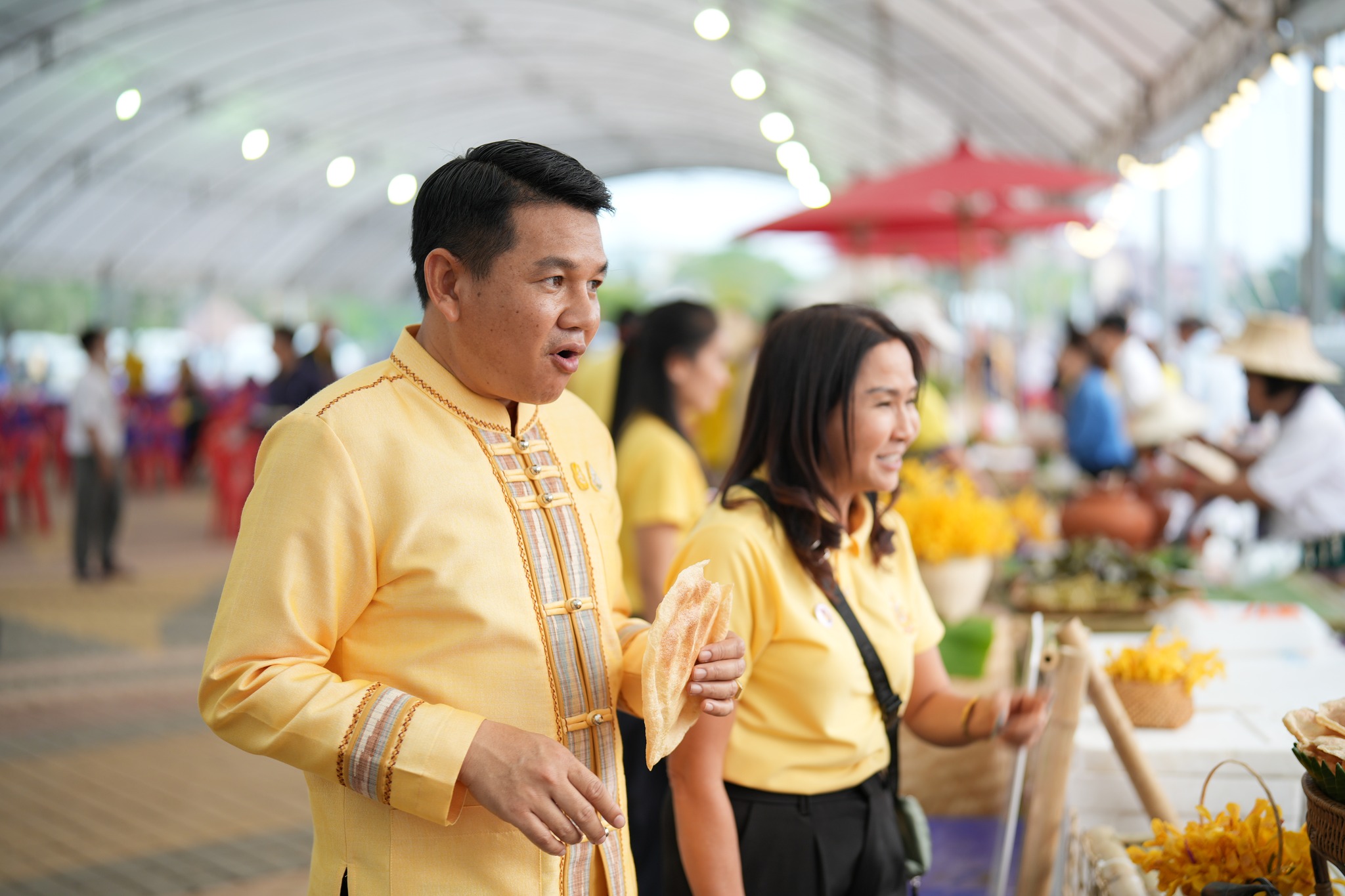 นายเศรษฐา ทวีสิน นายกรัฐมนตรี และรัฐมนตรีว่าการกระทรวงการคลัง พร้อมคณะเข้าสักการะอนุสาวรีย์พ่อขุนงำเมือง และพบปะประชาชนชาวจังหวัดพะเยา รับฟังการนำเสนอแผนพัฒนาโครงการ ชมนิทรรศการและผลิตภัณฑ์ชุมชนของจังหวัดพะเยา จากนั้นร่วมรับประทานอาหารเย็น โดยร้อยเอกธรรมนัส พรหมเผ่า รัฐมนตรีว่าการกระทรวงเกษตรและสหกรณ์ และนายอัครา พรหมเผ่า นายกองค์การบริหารส่วนจังหวัดพะเยา องค์การบริหารส่วนจังหวัดพะเยา ได้จัดสถานที่รับรองจากแนวคิด “นานแค่ไหนแล้วที่ไม่ได้ทานข้าวในตลาด” เมนูอาหารประกอบด้วย เวลคัมดริ้งค์เป็นน้ำผักกับลาบ ส่วนเมนูเรียกน้ำย่อย ประกอบด้วย กุ้งฝอยทอดกว๊านพะเยา ข้าวเกรียบผัก ปลาส้มทอด ไวน์แม่นาย ส่วนเมนูหลักได้แก่ แกงฮังเลหมู ลาบปลาเพี้ย แกงผักหวานไข่มดส้ม แกงอ่อมหมู ชุดน้ำพริกหนุ่ม น้ำพริกอ่อง ผักสด แคบหมู ไส้อั่ว ข้าวเหนียว และข้าวสวย ส่วนของหวาน แกงบวดฟักทอง กาละแมโบราณ สตอเบอรี่สด น้ำสมุนไพรเย็น นอกจากนี้ ยังมีการจัดซุ้มอาหารท้องถิ่น อาทิ ปลาส้มทอด ไข่ป่าม ลาบหมูลาบควาย ห่อนึ่งไก่ไร้กระดูก ณ ข่วงวัฒนธรรม ริมกว๊านพะเยา