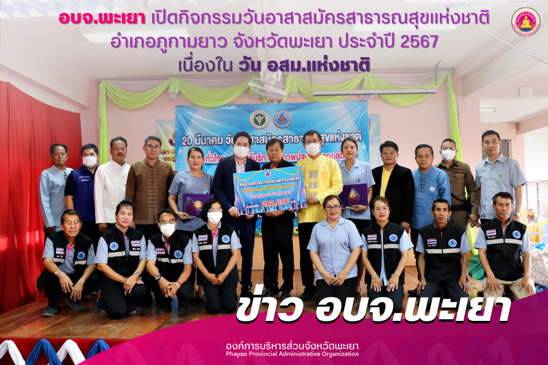องค์การบริหารส่วนจังหวัดพะเยา เปิดกิจกรรม วันอาสาสมัครสาธารณสุขแห่งชาติ อำเภอภูกามยาว จังหวัดพะเยา ประจำปี 2567 เนื่องในวัน อสม.แห่งชาติ