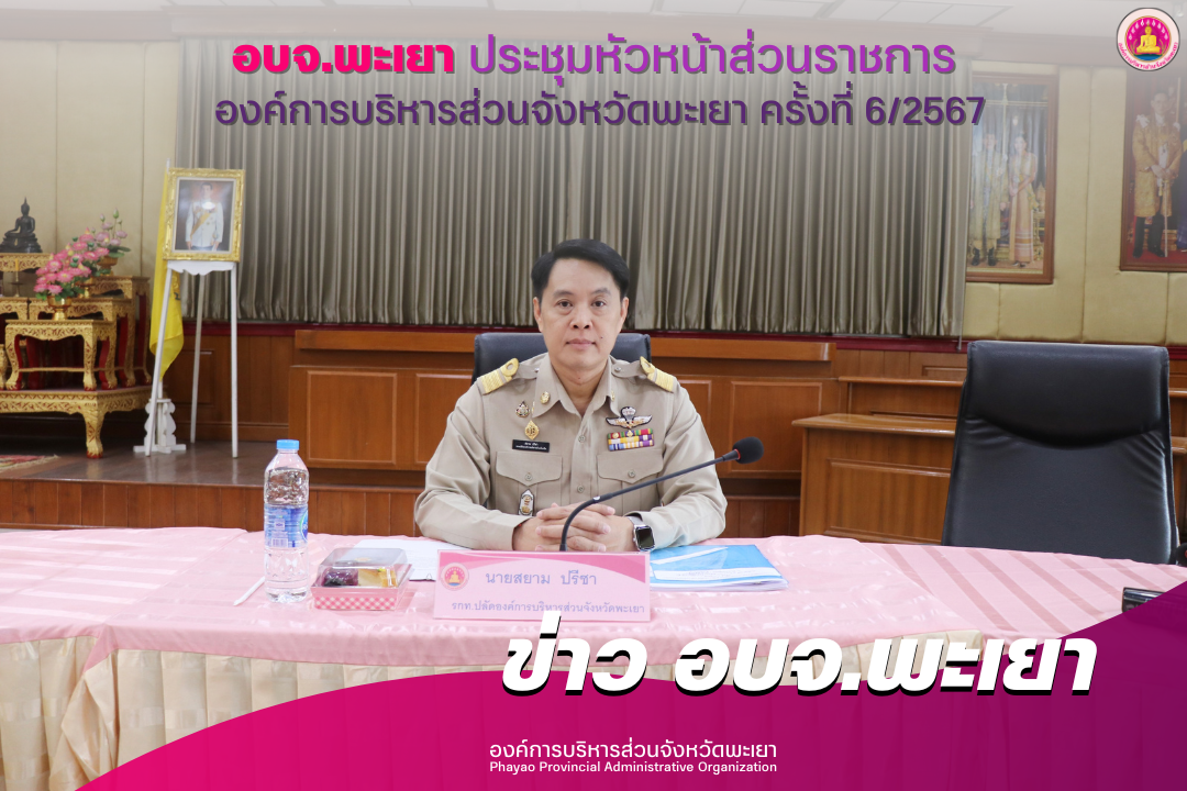องค์การบริหารส่วนจังหวัดพะเยา ประชุมหัวหน้าส่วนราชการองค์การบริหารส่วนจังหวัดพะเยา ครั้งที่ 6/2567 ณ ห้องประชุมสภาองค์การบริหารส่วนจังหวัดพะเยา