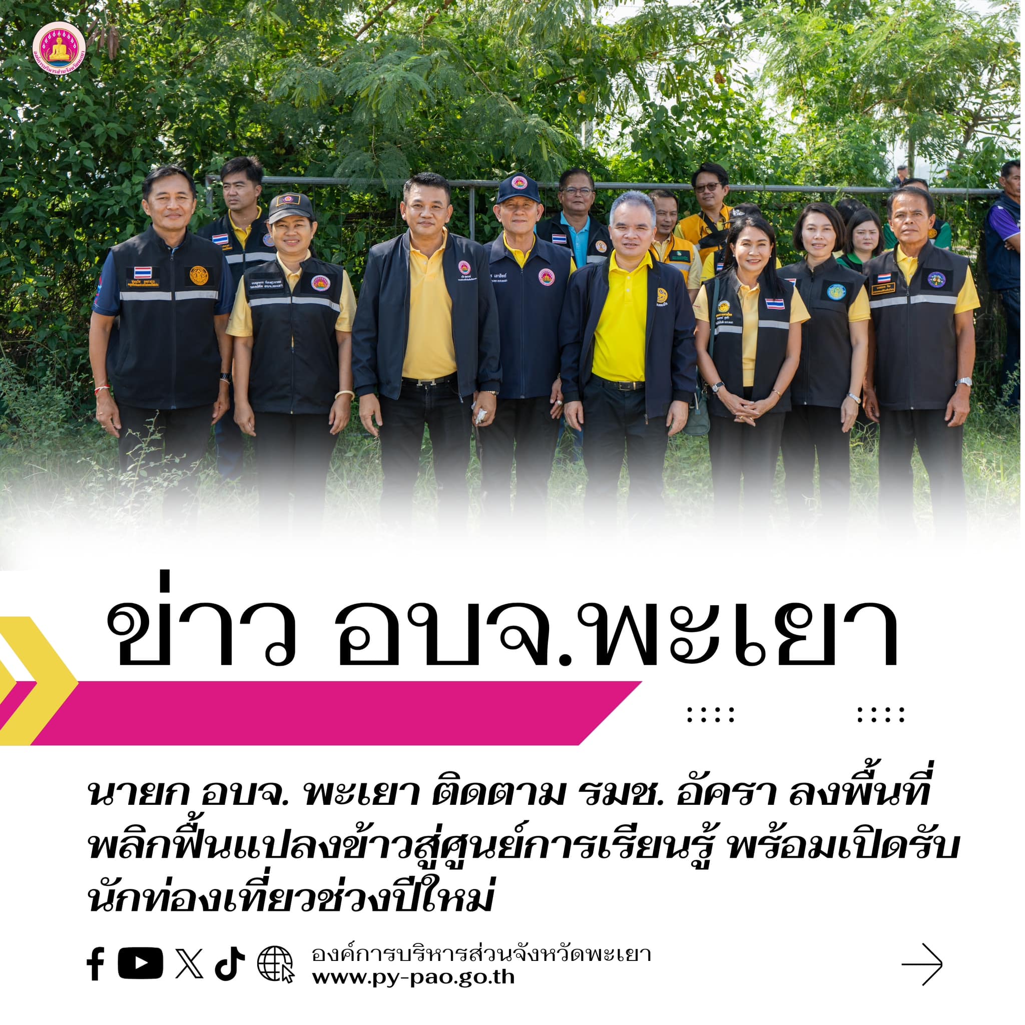 นายก อบจ. พะเยา ติดตาม รมช. อัครา ลงพื้นที่พลิกฟื้นแปลงข้าวสู่ศูนย์การเรียนรู้ พร้อมเปิดรับนักท่องเที่ยวช่วงปีใหม่