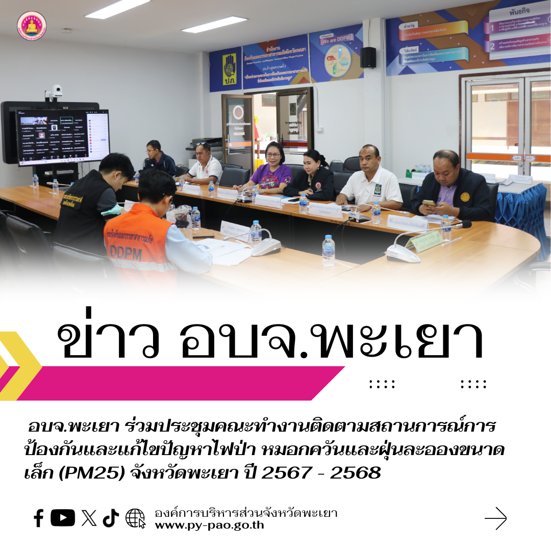 องค์การบริหารส่วนจังหวัดพะเยา ร่วมประชุมคณะทำงานติดตามสถานการณ์การป้องกันและแก้ไขปัญหาไฟป่า หมอกควันและฝุ่นละอองขนาดเล็ก (PM25) จังหวัดพะเยา ปี 2567 – 2568 ณ ห้องประชุม สำนักงานป้องกันและบรรเทาสาธารณภัยจังหวัดพะเยา ศาลากลางจังหวัดพะเยา (หลังเก่า) ชั้น 2 อำเภอเมืองพะเยา จังหวัดพะเยา