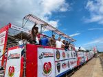 เรื่องที่สอง องค์การบริหารส่วนจังหวัดพะเยาเตรียมเก้าอี้ เพื่อนำขึ้นไปติดตั้งบนสแตนด์สำหรับผู้ชมการแข่งขัน