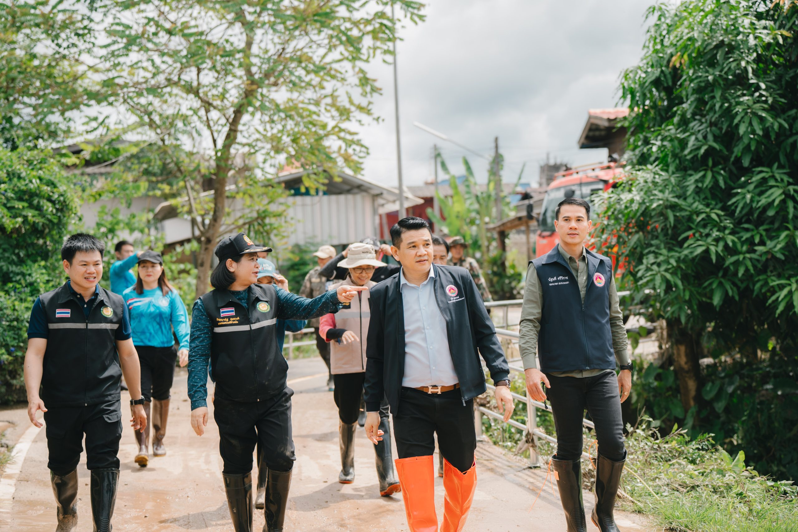 วันที่ 25 กันยายน 2568 นายธวัช สุทธวงค์ นายกองค์การบริหารส่วนจังหวัดพะเยา พร้อมด้วยนายนัฐนที ศรีวิราช รองนายก อบจ.พะเยา นางกัญญาณัฐ สุทธวงค์ นายกเทศมนตรีเทศบาลตำบลงิม นายอภิสิทธิ์ พุทธวงศ์ นายกอบต.งิม และเจ้าหน้าที่ฝ่ายป้องกันและบรรเทาสาธารณภัย ร่วมลงพื้นที่อย่างเร่งด่วนในเขตเทศบาลตำบลงิม อำเภอปง จังหวัดพะเยา หลังเกิดเหตุอุทกภัยจากพายุ “รากาซา” ส่งผลให้น้ำป่าไหลหลากเข้าท่วมบ้านเรือนประชาชนและพื้นที่การเกษตรได้รับความเสียหายเป็นวงกว้าง