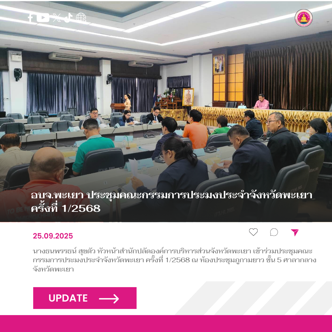 วันที่ 25 กันยายน 2568 นายธวัช สุทธวงค์ นายกองค์การบริหารส่วนจังหวัดพะเยา มอบหมายให้ นางธนพรรธน์ สุขตัว หัวหน้าสำนักปลัดองค์การบริหารส่วนจังหวัดพะเยา เข้าร่วมประชุมคณะกรรมการประมงประจำจังหวัดพะเยา ครั้งที่ 1/2568 ณ ห้องประชุมภูกามยาว ชั้น 5 ศาลากลางจังหวัดพะเยา เพื่อร่วมพิจารณาเกี่ยวกับการดำเนินงานด้านการประมง ตามพระราชกำหนดการประมง พ.ศ. 2558 และข้อเสนออื่น ๆ ที่เกี่ยวข้อง โดยมีนายรัฐพล นราดิศร ผู้ว่าราชการจังหวัดพะเยา เป็นประธานฯ