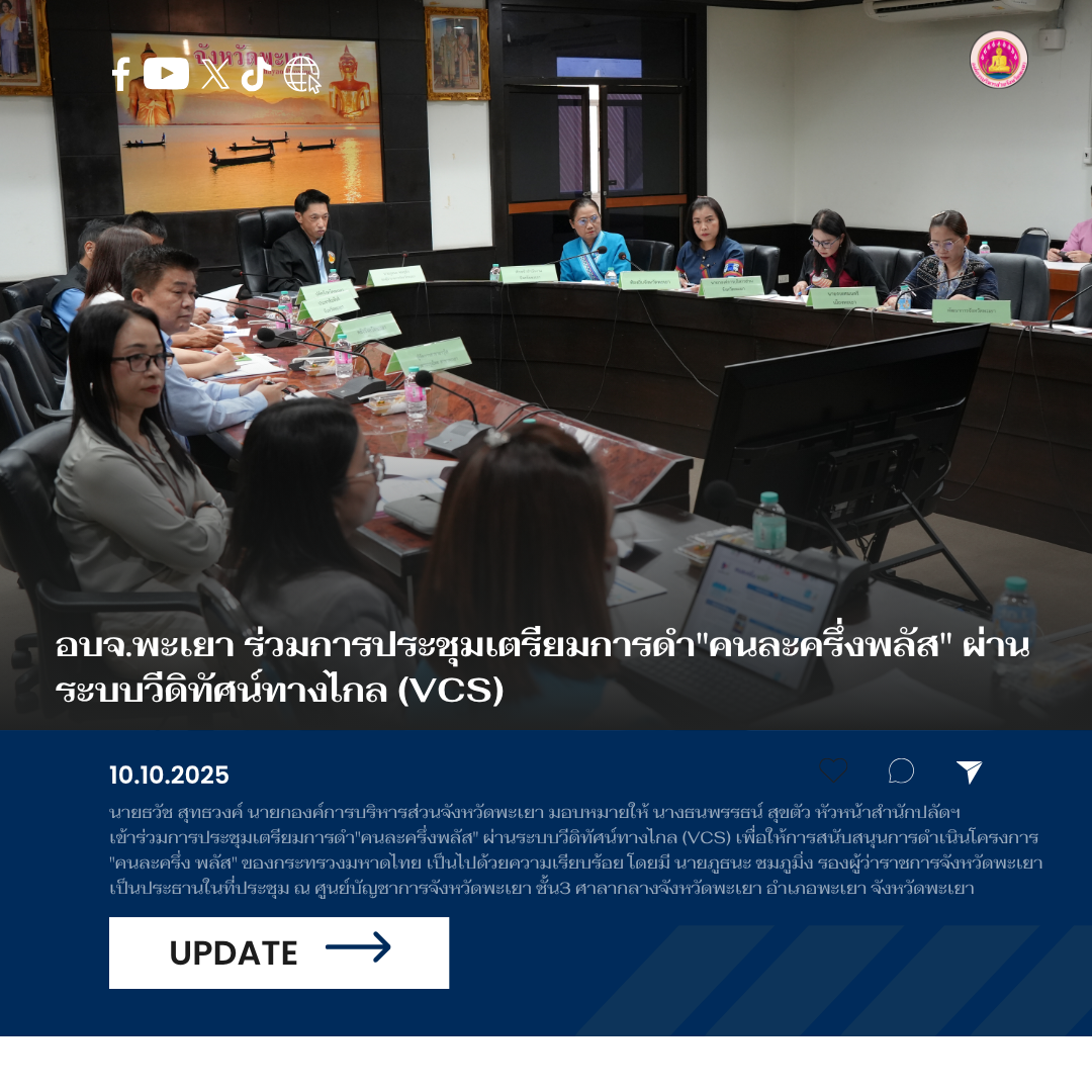 วันที่ 10 ตุลาคม 2568 นายธวัช สุทธวงค์ นายกองค์การบริหารส่วนจังหวัดพะเยา มอบหมายให้ นางธนพรรธน์ สุขตัว หัวหน้าสำนักปลัดฯ