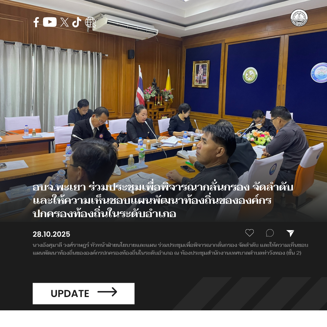 วันที่ 28 ตุลาคม 2568 นายธวัช สุทธวงค์ นายกองค์การบริหารส่วนจังหวัดพะเยา มอบหมายให้ นางอังศุมาลี วงศ์ราษฎร์ หัวหน้าฝ่ายนโยบายและแผน ร่วมประชุมคณะกรรมการประสานแผนพัฒนาท้องถิ่นแบบบูรณาการขององค์การปกครองท้องถิ่น โดยมีนายวชิรวิชญ์ วิศววิฑูรย์ นายกเทศมนตรีตำบลแม่ใจ เป็นประธานในการประชุม