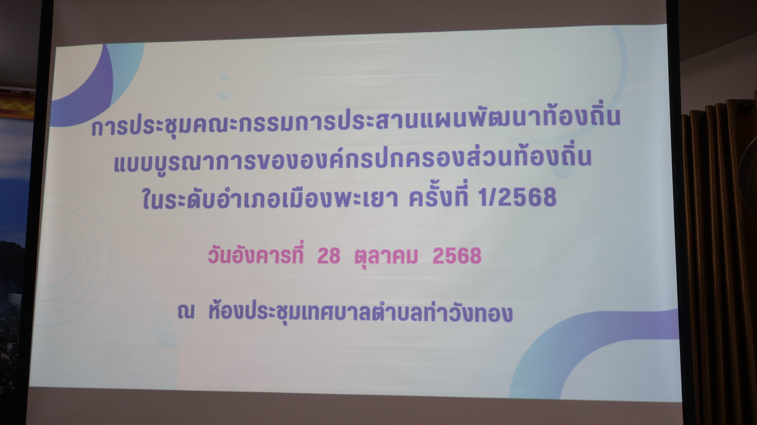 เพื่อให้การประสานงานและบูรณาการจัดทำแผนพัฒนาท้องถิ่นในระดับอำเภอเมืองพะเยาเกิดประสิทธิภาพและประสิทธิผลณ ห้องประชุมสำนักงานเทศบาลตำบลท่าวังทอง (ชั้น 2)