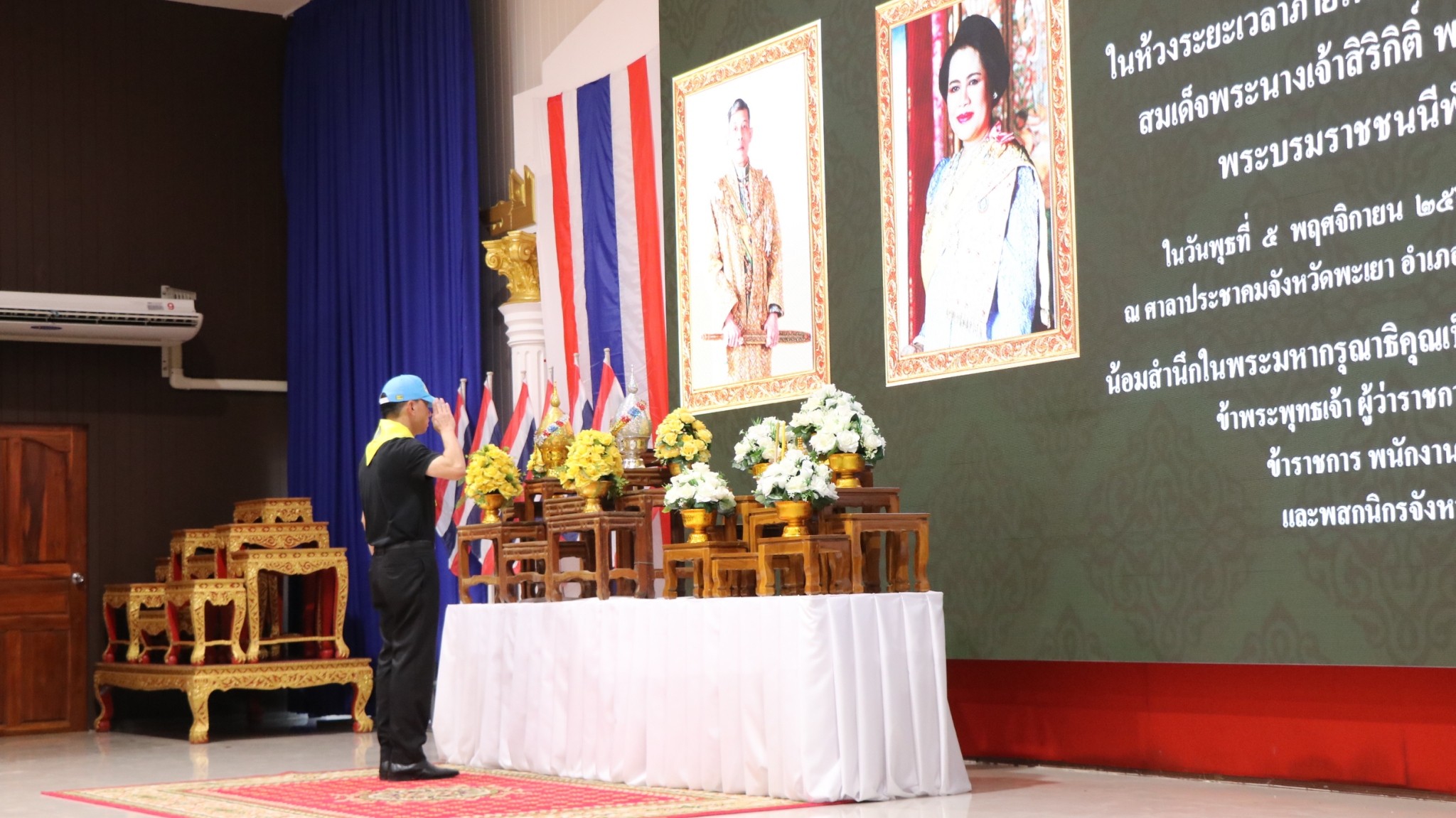 วันที่ 5 พฤศจิกายน 2568 นายธวัช สุทธวงค์ นายกองค์การบริหารส่วนจังหวัดพะเยา พร้อมด้วยคณะผู้บริหาร และหัวหน้าส่วนราชการ ร่วมพิธีเปิดกิจกรรม “รวมพลังแห่งความภักดี ในห้วงระยะเวลา 100 วัน แห่งการสวรรคต” โดยมีนายภูธนะ ชมภูมิ่ง รองผู้ว่าราชการจังหวัดพะเยา รักษาราชการแทนผู้ว่าราชการจังหวัดพะเยา เป็นประธานในพิธี ณ ศาลาประชาคมจังหวัดพะเยา