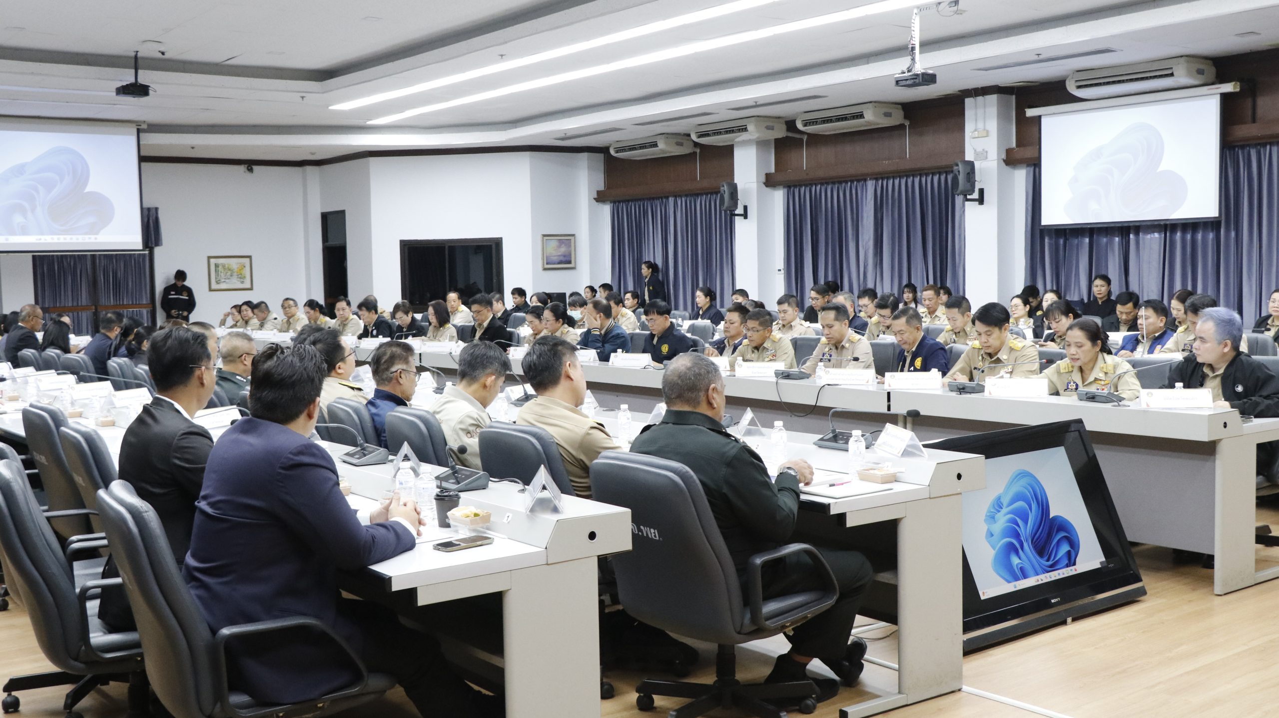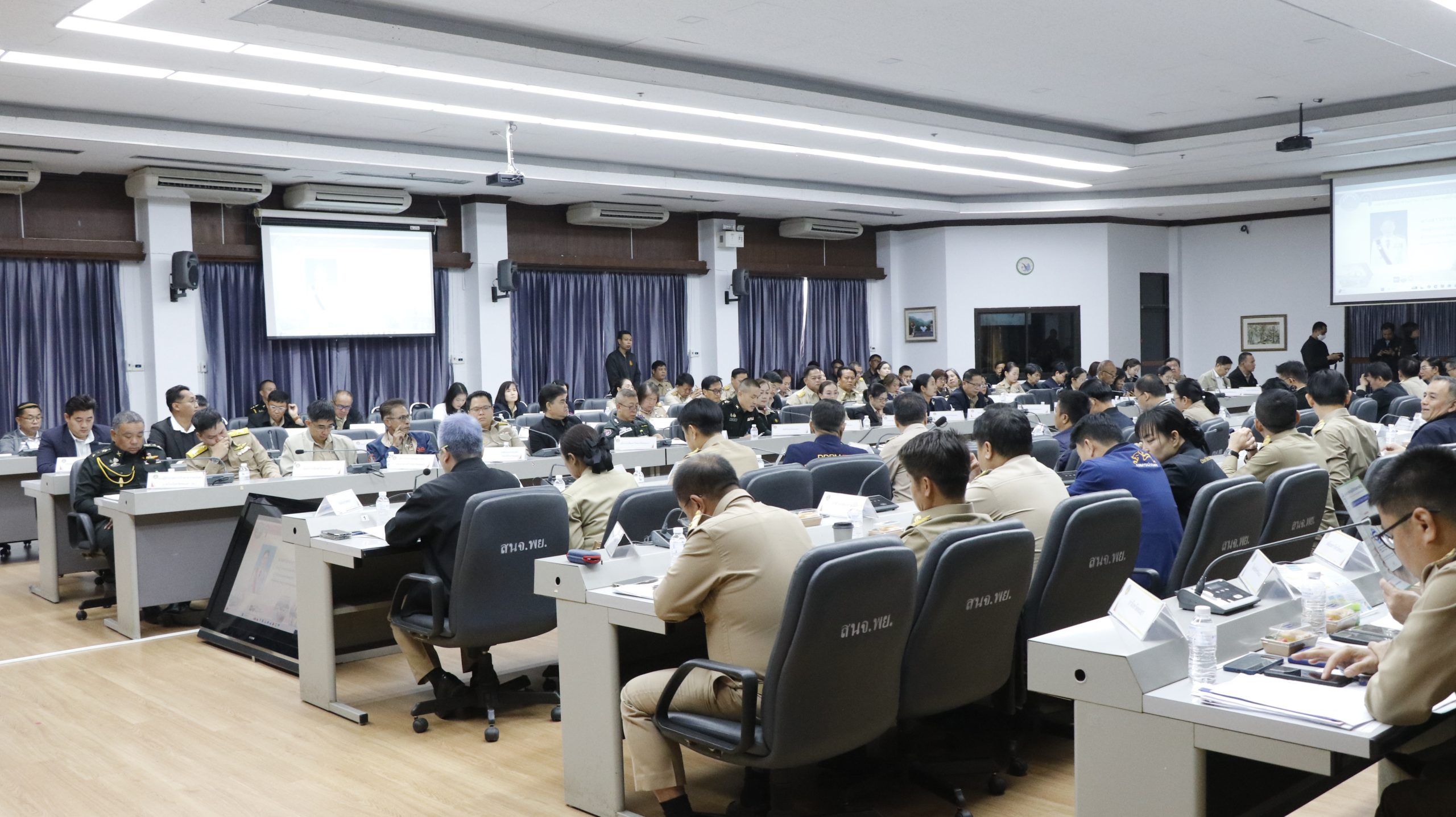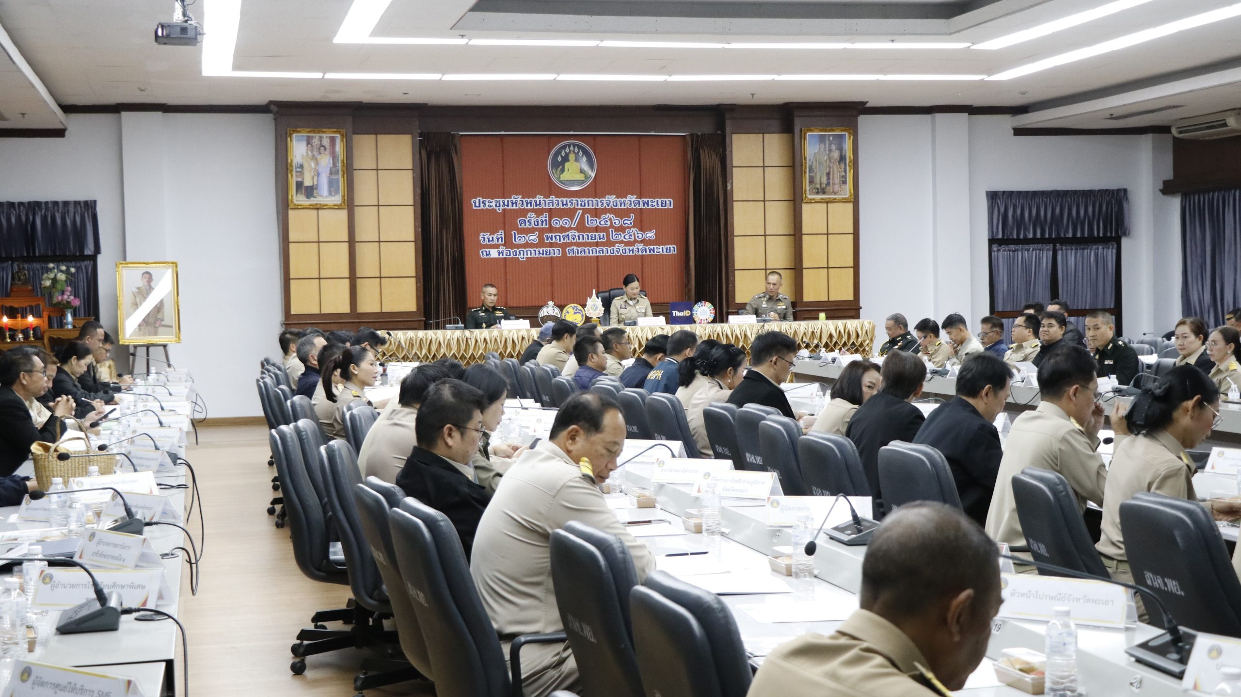 วันที่ 28 พฤศจิกายน 2568 นายธวัช สุทธวงค์ นายกองค์การบริหารส่วนจังหวัดพะเยา มอบหมายให้ นายสยาม ปรีชา ปลัดองค์การบริหารส่วนจังหวัดพะเยา เข้าร่วมประชุมคณะกรมการจังหวัด และหัวหน้าส่วนราชการจังหวัดพะเยา ครั้งที่ 11/2568 เพื่อรับทราบข้อราชการสำคัญและกำหนดแนวทางการปฏิบัติงานร่วมกันอย่างมีประสิทธิภาพ โดยมี นางสาวอรอาภา โล่ห์วีระ รองผู้ว่าราชการจังหวัดพะเยา รักษาราชการแทนผู้ว่าราชการจังหวัดพะเยา เป็นประธานในที่ประชุม ณ ห้องประชุมภูกามยาว ชั้น 5 ศาลากลางจังหวัดพะเยา