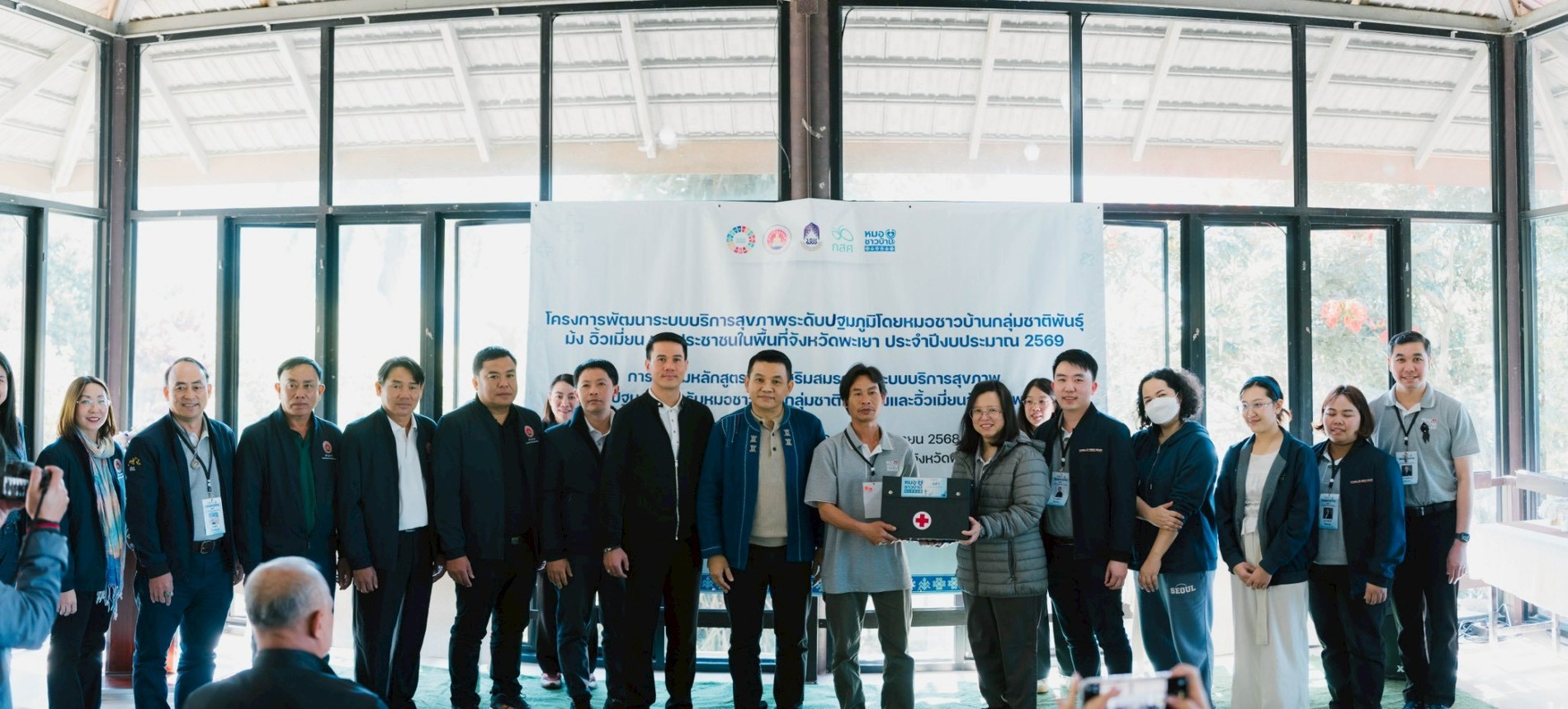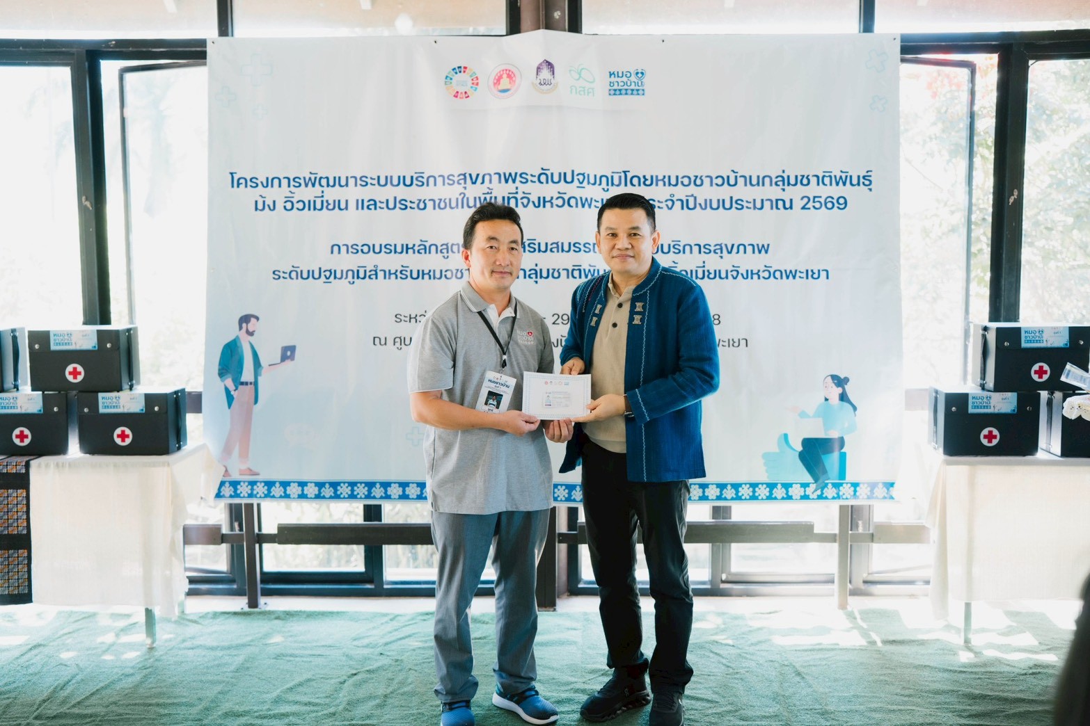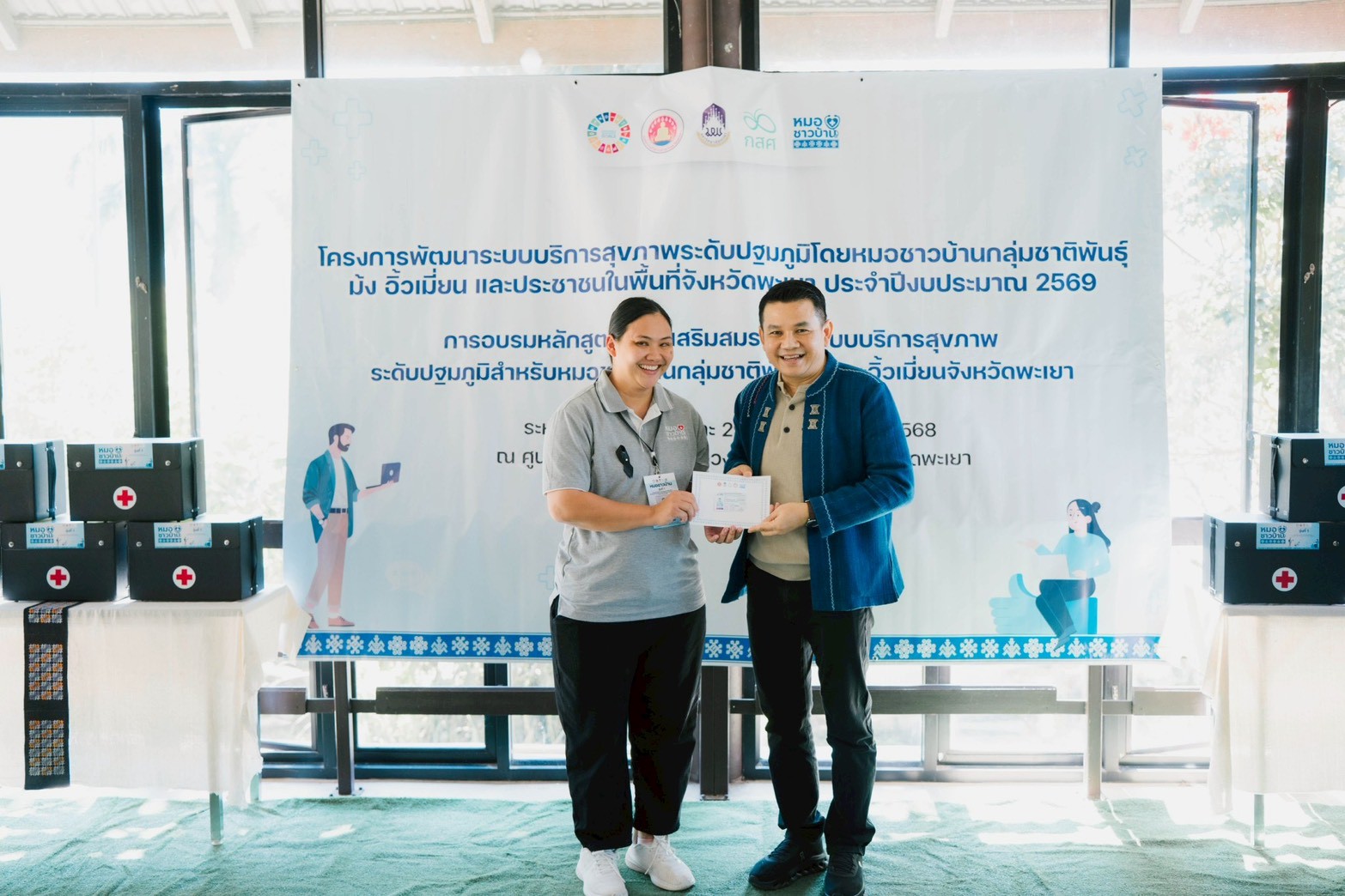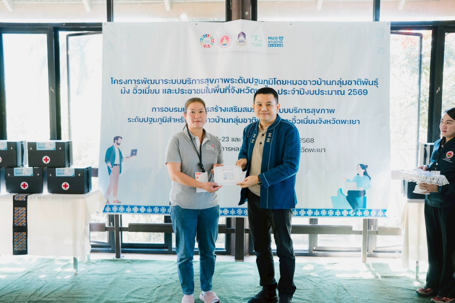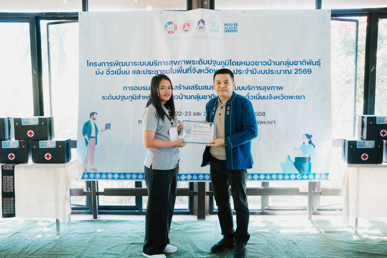 วันอาทิตย์ที่ 30 พฤศจิกายน 2568 นายธวัช สุทธวงค์ นายกองค์การบริหารส่วนจังหวัดพะเยา เป็นประธานในพิธีมอบประกาศนียบัตรแก่ผู้สำเร็จการฝึกอบรมเชิงปฏิบัติการ “หลักสูตรสร้างเสริมสมรรถนะระบบบริการสุขภาพระดับปฐมภูมิสำหรับหมอชาวบ้านกลุ่มชาติพันธุ์ม้งและอิ้วเมี่ยน จังหวัดพะเยา” รุ่นที่ 1 ประจำปีงบประมาณ 2569 ณ ศูนย์พัฒนาโครงการหลวงปังค่า โดยมีคณะผู้บริหาร อบจ.พะเยา คณาจารย์คณะสาธารณสุขศาสตร์ มหาวิทยาลัยพะเยา และผู้อำนวยการ รพ.สต. ในพื้นที่ร่วมเป็นเกียรติในพิธี