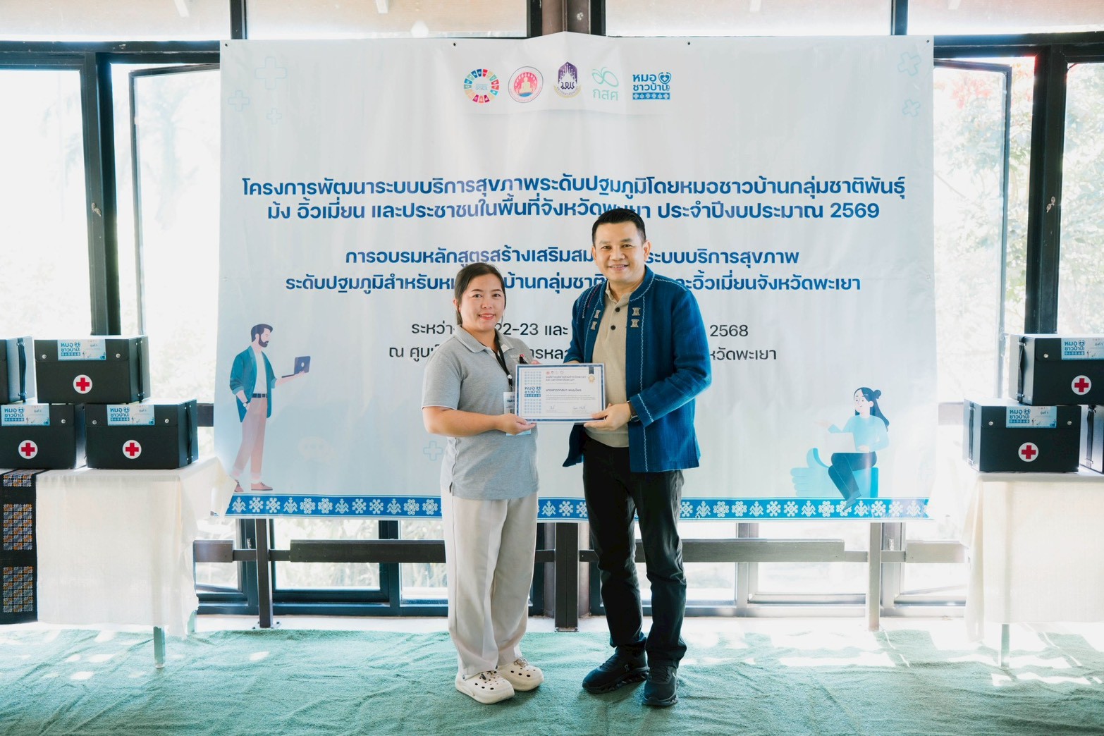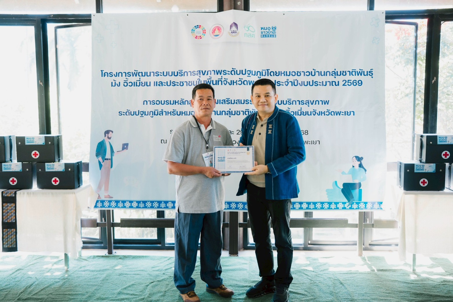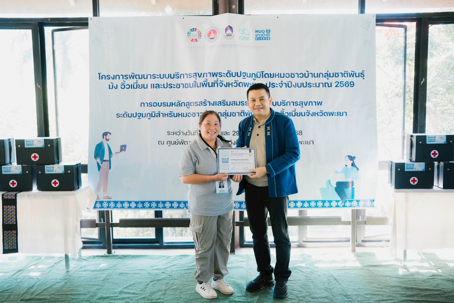 การอบรมในครั้งนี้เกิดขึ้นจากความมุ่งมั่นขององค์การบริหารส่วนจังหวัดพะเยาในการยกระดับองค์ความรู้และศักยภาพของหมอชาวบ้านในกลุ่มชาติพันธุ์ม้งและอิ้วเมี่ยน เพื่อให้สามารถเป็นกำลังสำคัญในการดูแลสุขภาพประชาชนในพื้นที่ห่างไกล โดยได้รับการสนับสนุนด้านการพัฒนาหลักสูตรจากมหาวิทยาลัยพะเยา นำโดย รศ.ดร.ผณินทรา ธีรานนท์ ผู้ช่วยอธิการบดี พร้อมทีมวิทยากรผู้เชี่ยวชาญจากคณะสาธารณสุขศาสตร์ ได้แก่ ผู้ช่วยศาสตราจารย์ ดร.นัฐพล ปันสกุล, ผู้ช่วยศาสตราจารย์มณุเชษฐ์ มะโนธรรม, อาจารย์เนตรนภา พรหมมา, อาจารย์ภัชรี พิมาลรัมย์ และอาจารย์วิชิดา หล้าสมศรี