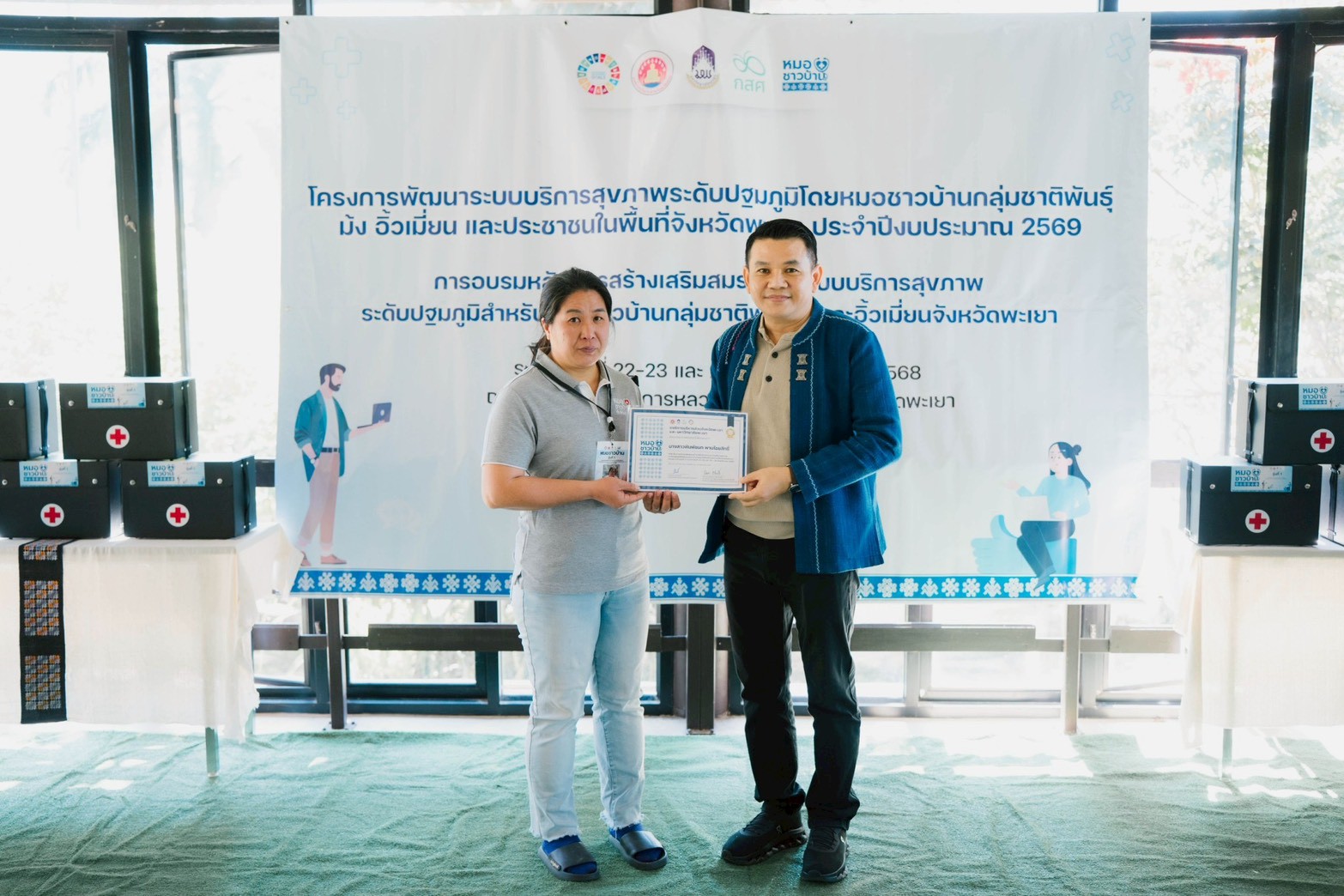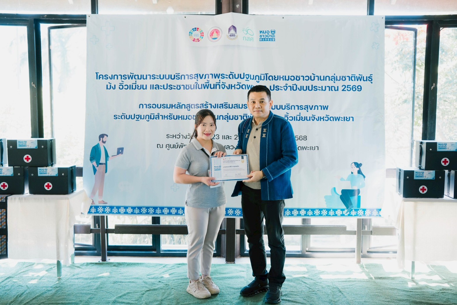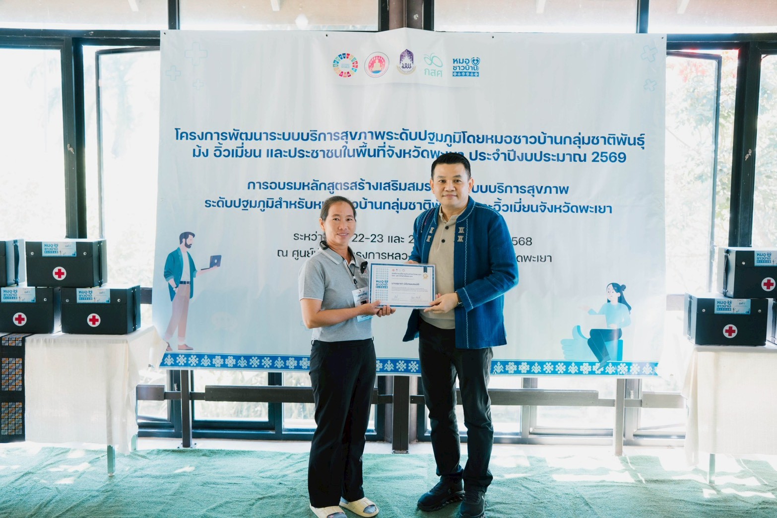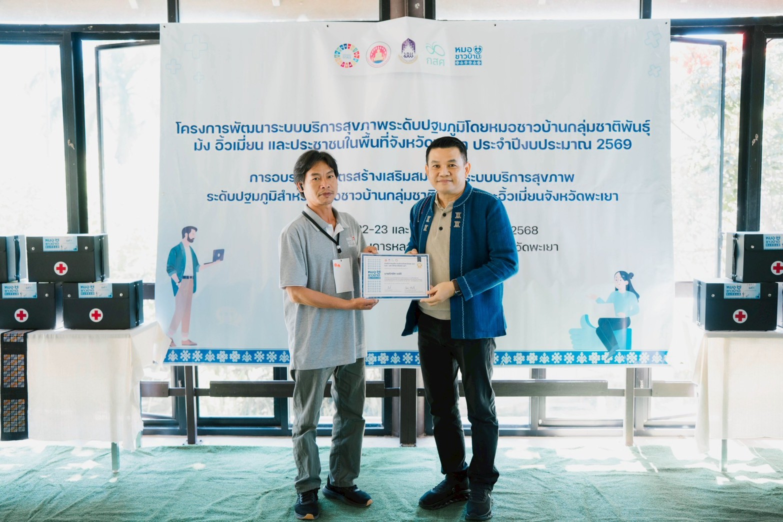 การอบรมในครั้งนี้เกิดขึ้นจากความมุ่งมั่นขององค์การบริหารส่วนจังหวัดพะเยาในการยกระดับองค์ความรู้และศักยภาพของหมอชาวบ้านในกลุ่มชาติพันธุ์ม้งและอิ้วเมี่ยน เพื่อให้สามารถเป็นกำลังสำคัญในการดูแลสุขภาพประชาชนในพื้นที่ห่างไกล โดยได้รับการสนับสนุนด้านการพัฒนาหลักสูตรจากมหาวิทยาลัยพะเยา นำโดย รศ.ดร.ผณินทรา ธีรานนท์ ผู้ช่วยอธิการบดี พร้อมทีมวิทยากรผู้เชี่ยวชาญจากคณะสาธารณสุขศาสตร์ ได้แก่ ผู้ช่วยศาสตราจารย์ ดร.นัฐพล ปันสกุล, ผู้ช่วยศาสตราจารย์มณุเชษฐ์ มะโนธรรม, อาจารย์เนตรนภา พรหมมา, อาจารย์ภัชรี พิมาลรัมย์ และอาจารย์วิชิดา หล้าสมศรี