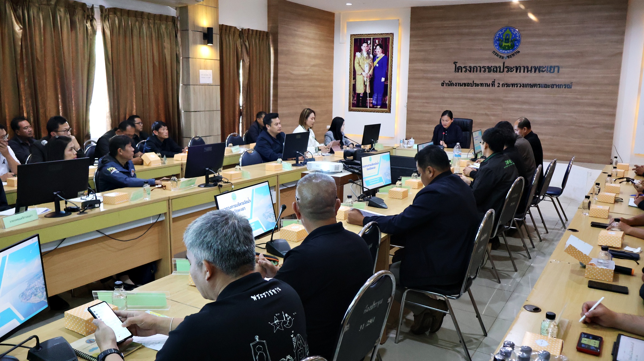 ณ ห้องประชุมโครงการชลประทานพะเยา อ.ดอกคำใต้ จ.พะเยา โดยมี นางสาวอรอาภา โล่ห์วีระ รองผู้ว่าราชการจังหวัดพะเยา รักษาราชการแทนผู้ว่าราชการจังหวัดพะเยา เป็นประธานในที่ประชุม