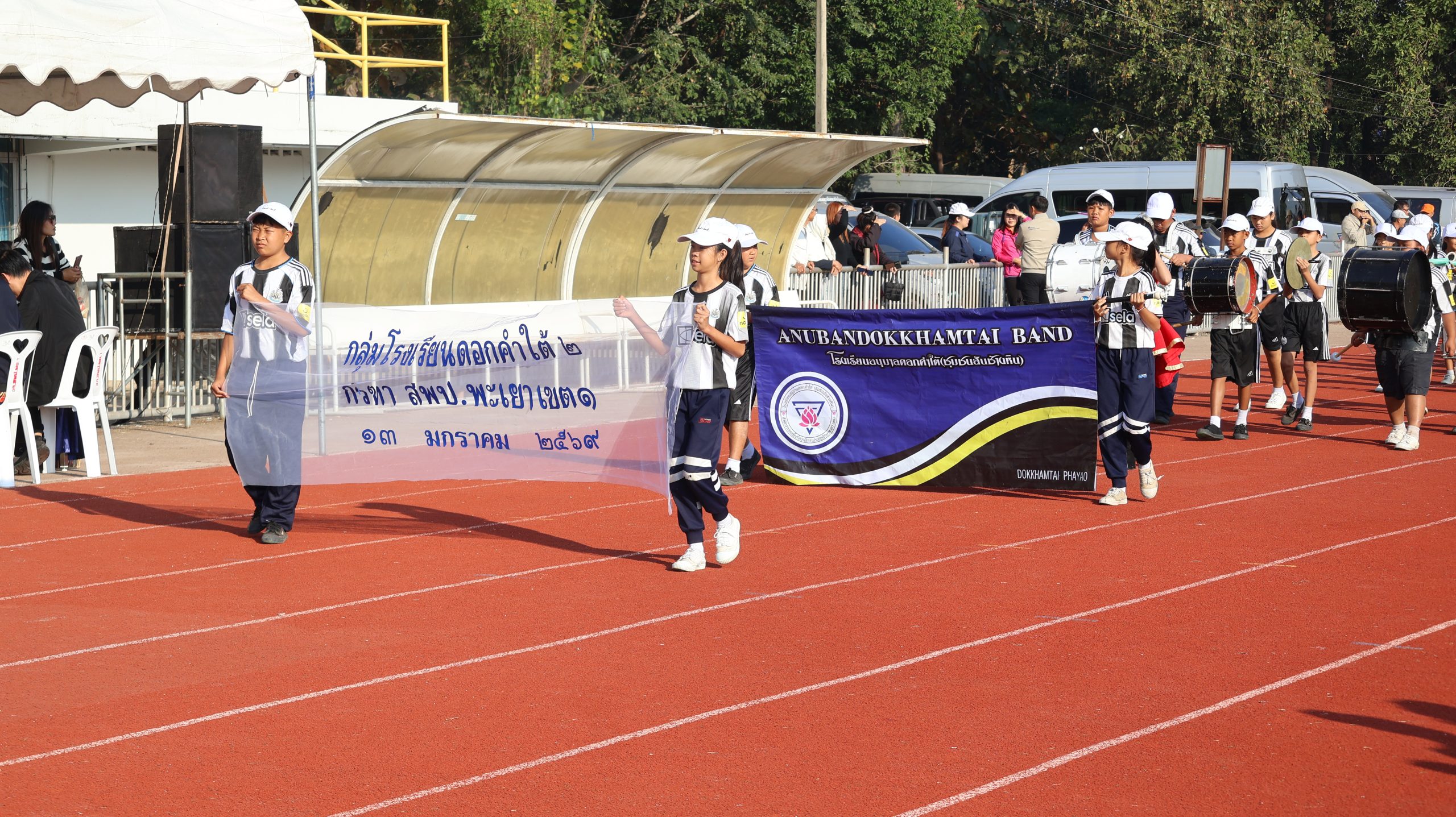 ขบวนพาเหรดนักกีฬา: จากโรงเรียนในเขตพื้นที่การศึกษาประถมศึกษาพะเยา เขต 1 และเขตพื้นที่การศึกษาอื่นๆ ในจังหวัดพะเยา อาทิ โรงเรียนในเขตอำเภอเมืองพะเยา อำเภอดอกคำใต้ อำเภอภูกามยาว และอำเภอแม่ใจ