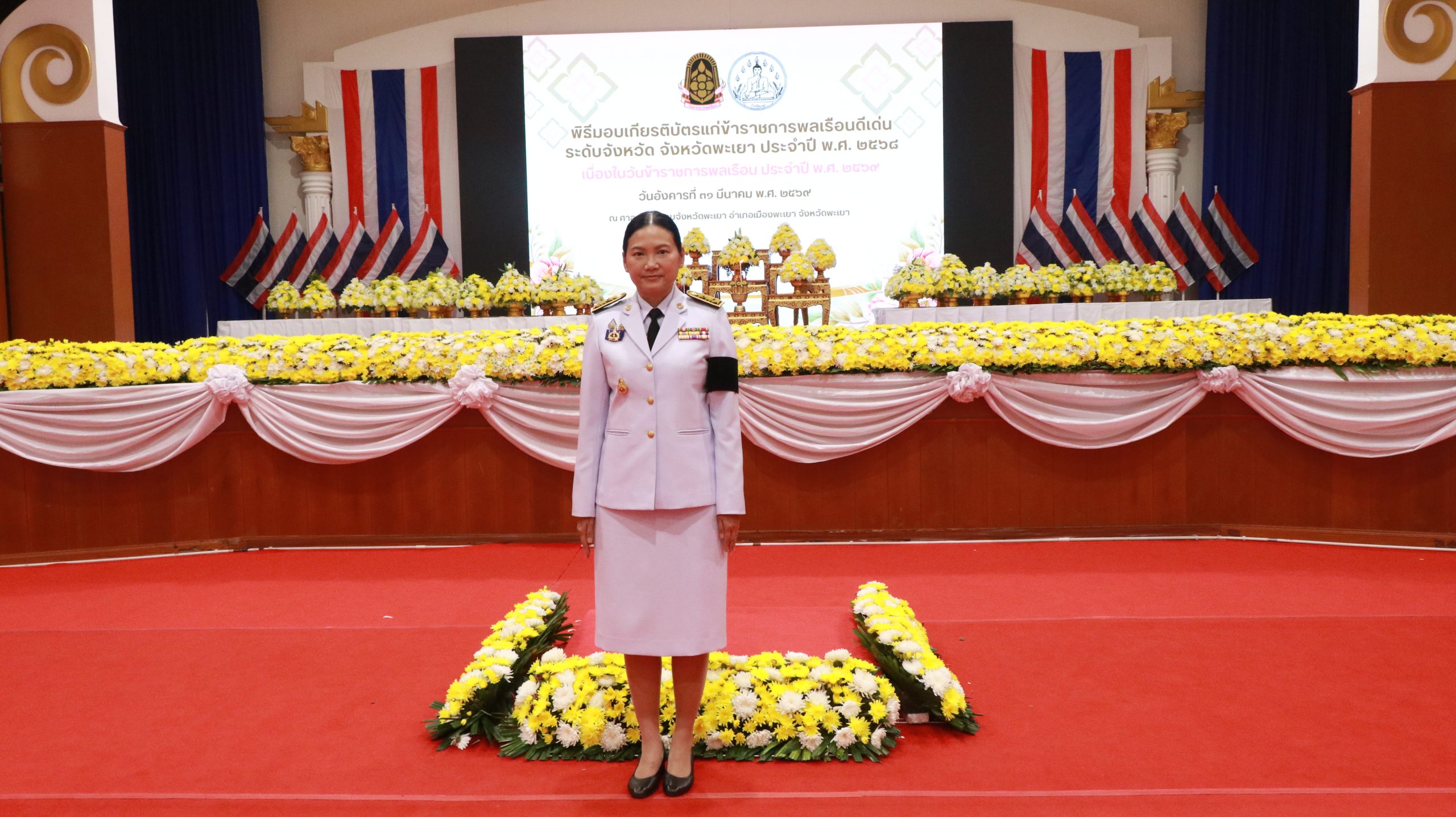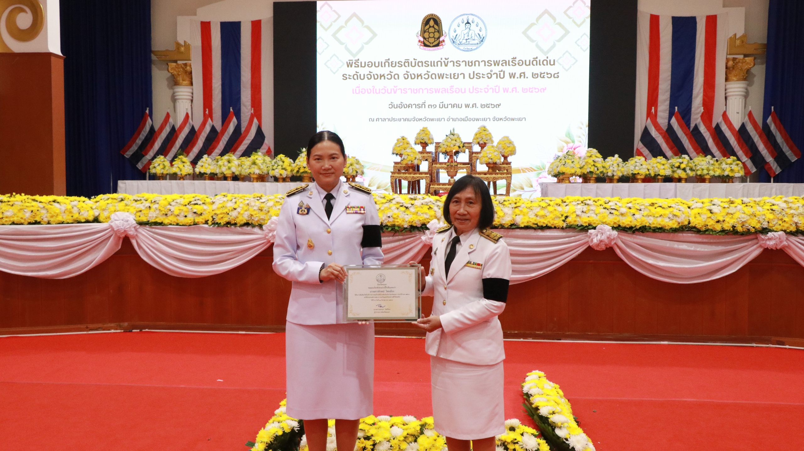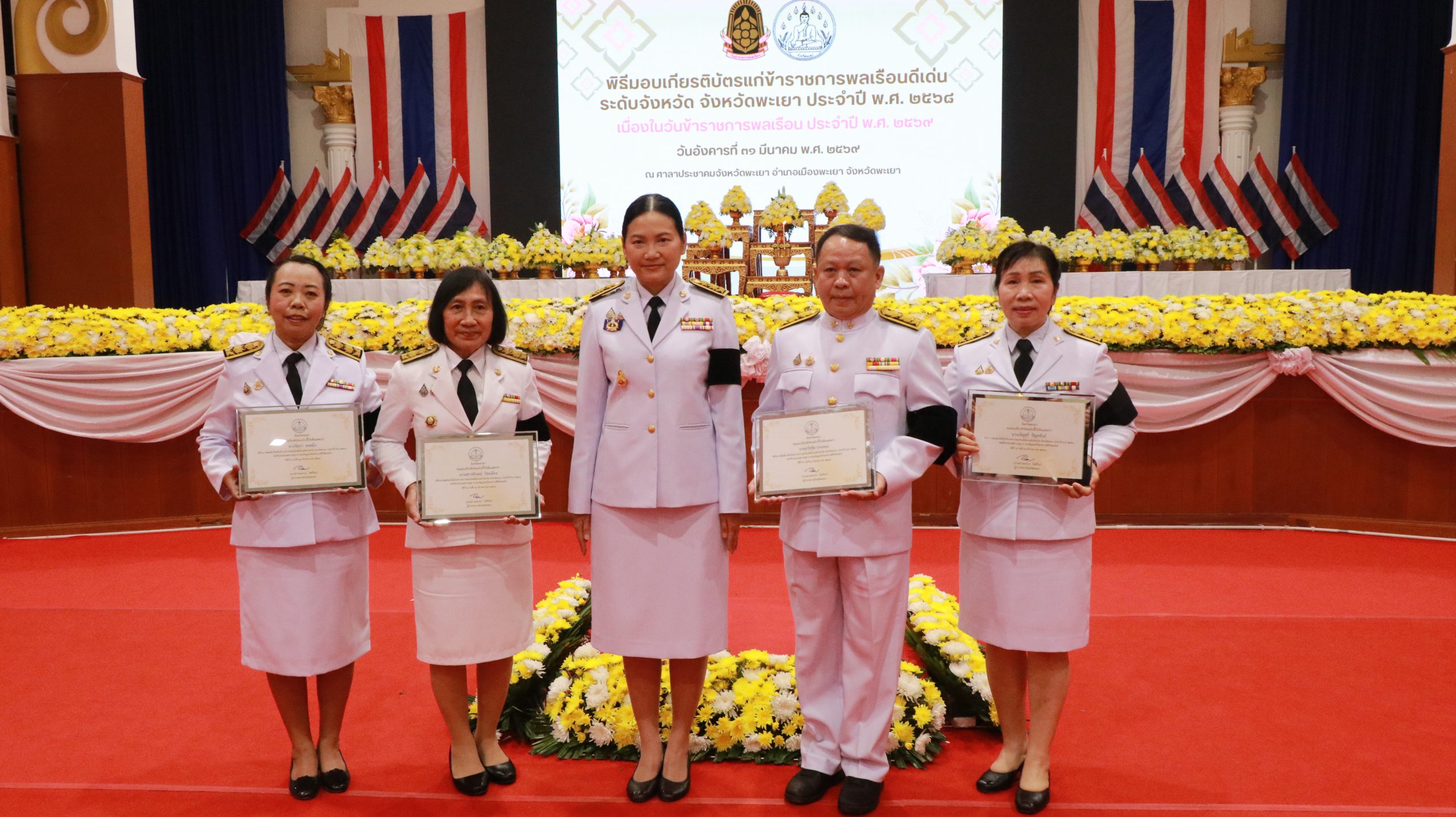 พิธีมอบเกียรติบัตร : หัวหน้าสำนักงานจังหวัดพะเยากล่าวรายงานผลการคัดเลือก จากนั้นผู้ว่าราชการจังหวัดจะมอบเกียรติบัตรให้แก่ ข้าราชการพลเรือนดีเด่นระดับจังหวัด ประจำปี พ.ศ. 2568 จำนวน 4 ราย เพื่อเป็นการเชิดชูเกียรติและบันทึกภาพร่วมกัน