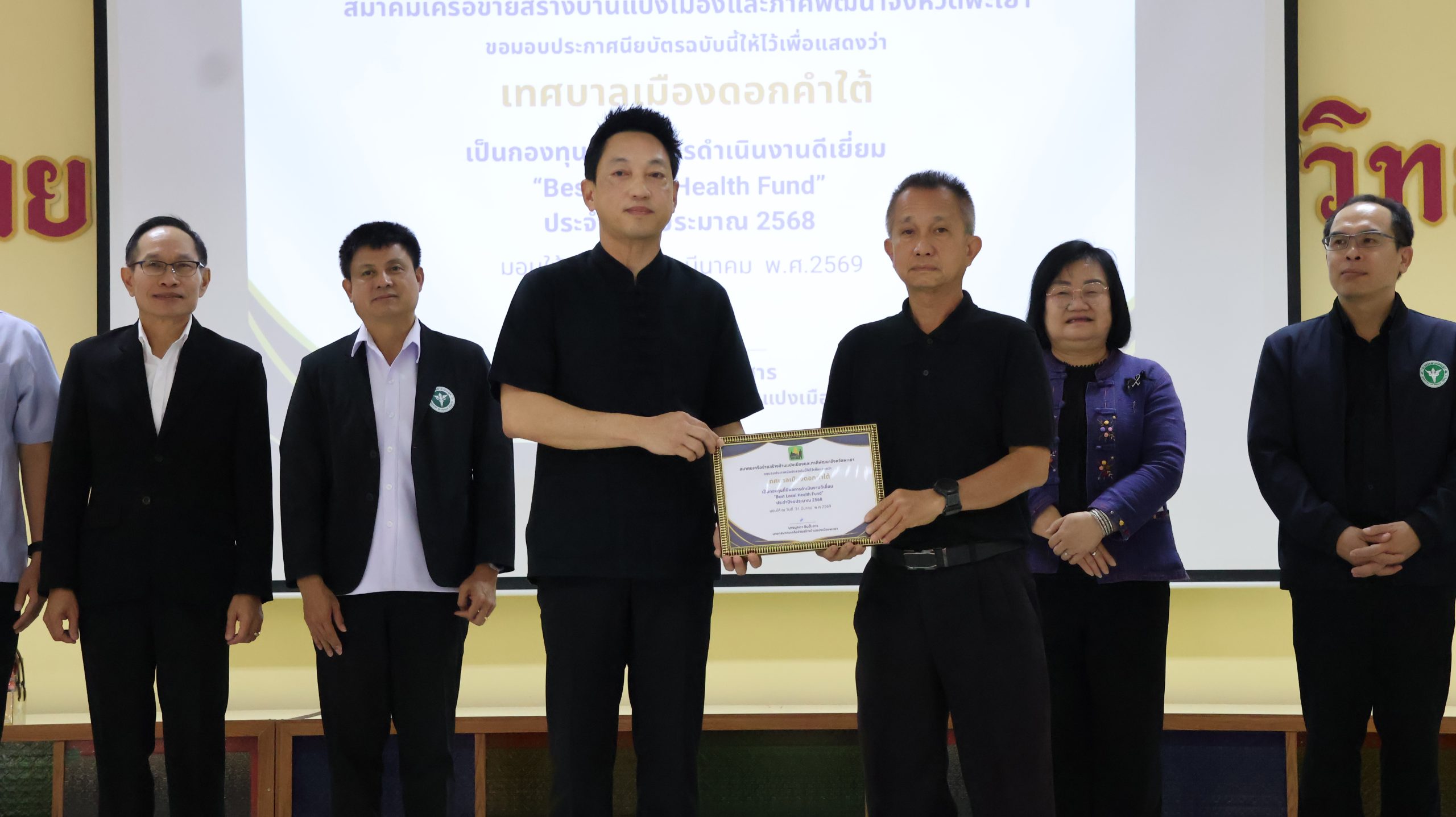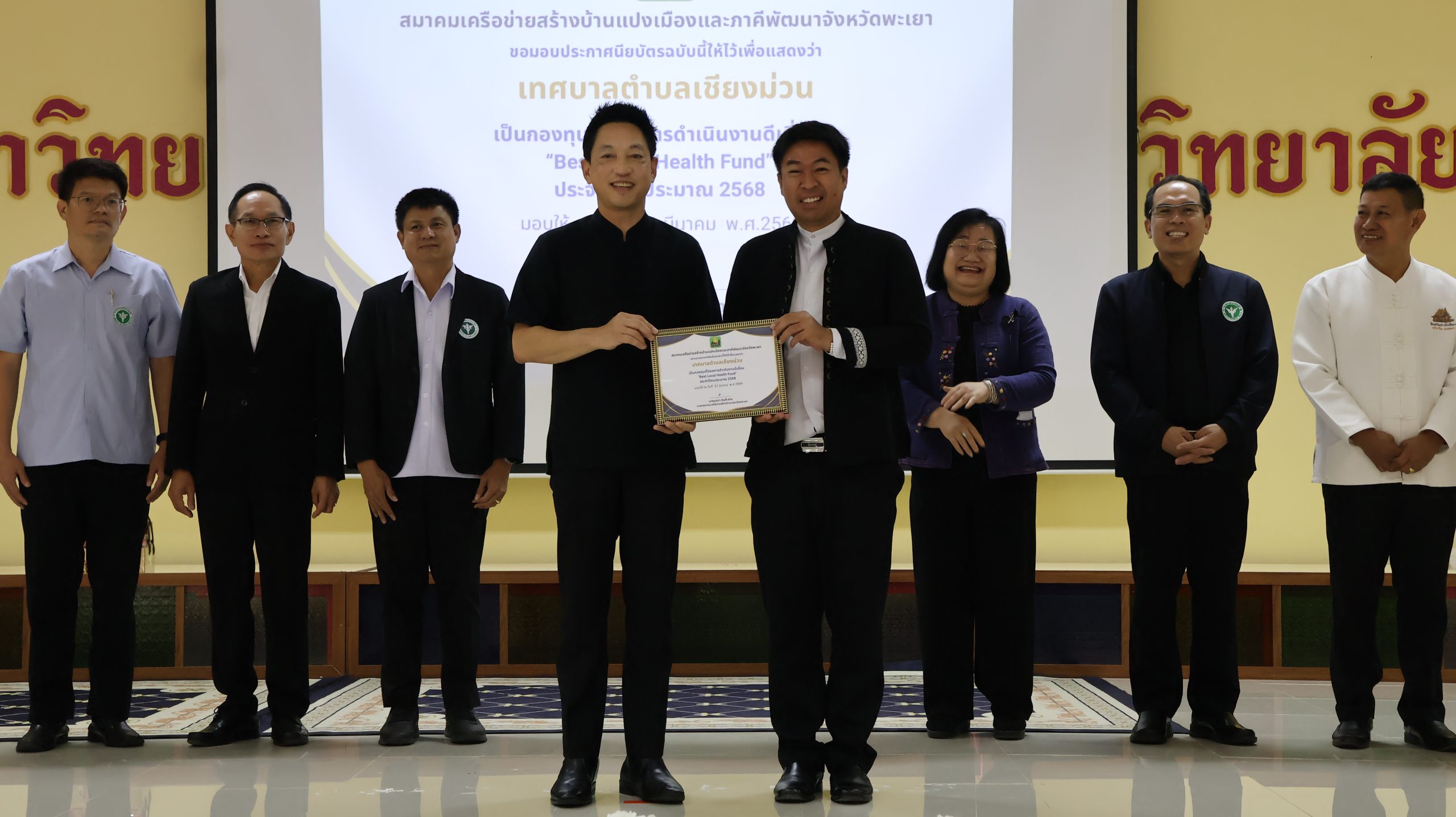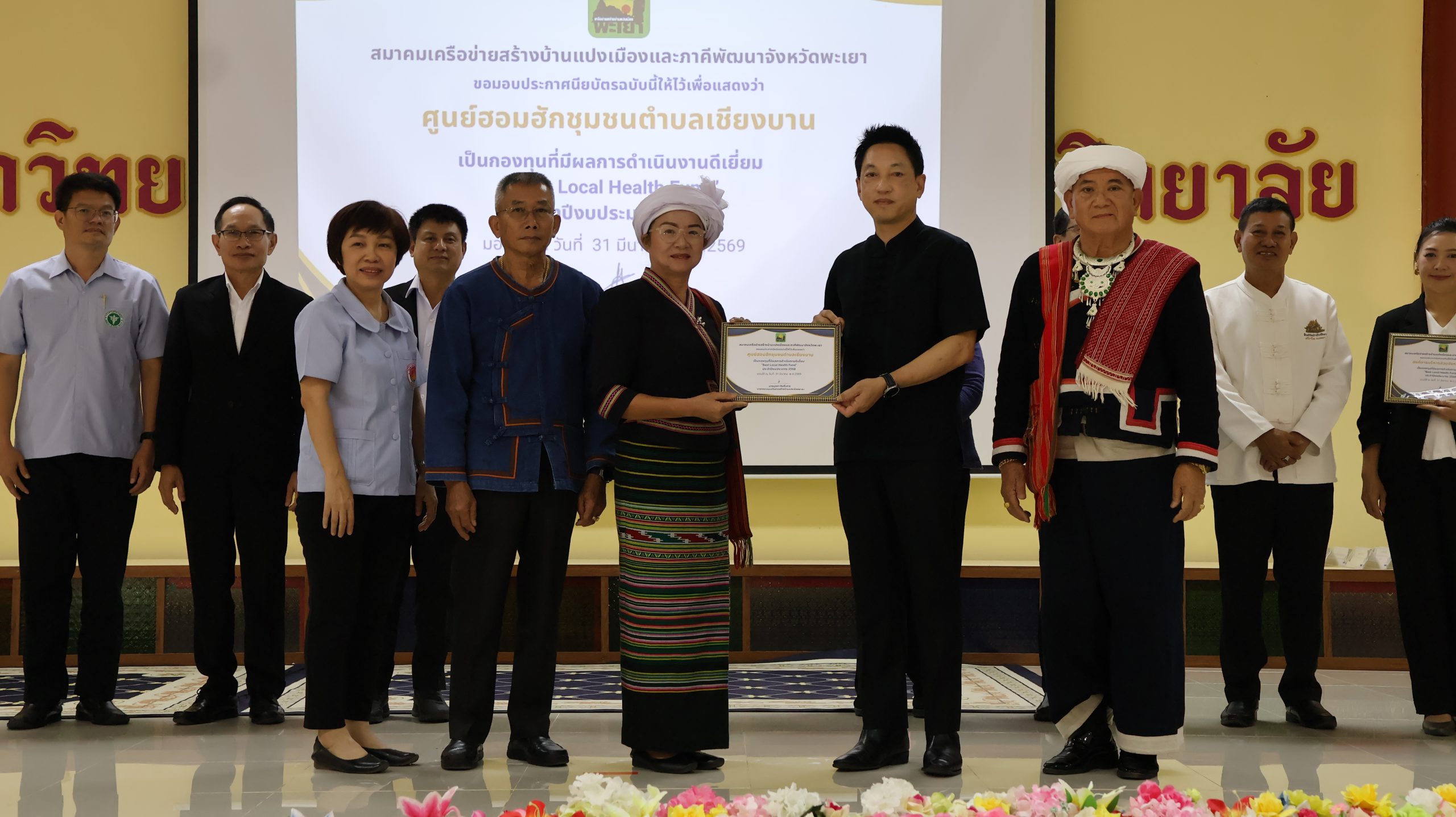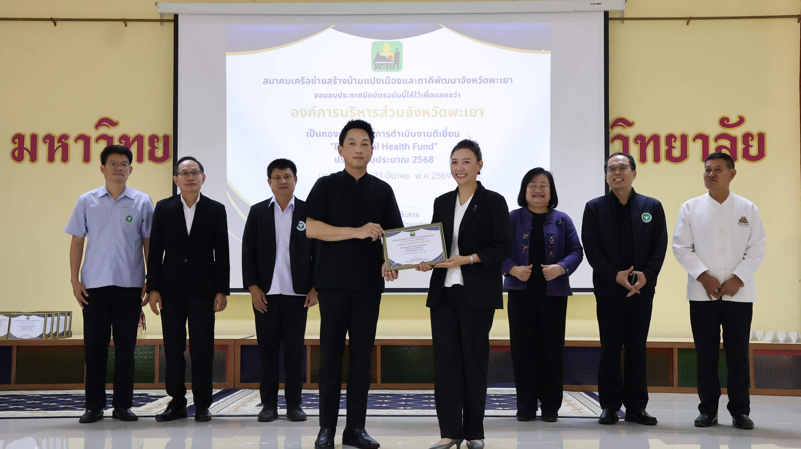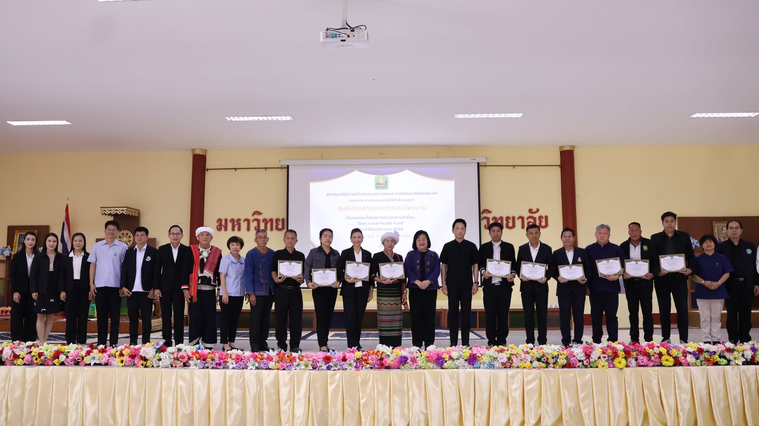 พิธีมอบรางวัลอันทรงเกียรติ นายภูธนะ ชมภูมิ่ง รองผู้ว่าราชการจังหวัดพะเยา ให้เกียรติเป็นประธานในพิธีเปิดและมอบเกียรติบัตรให้แก่กองทุนที่มีผลการดำเนินงานดีเยี่ยม “Best Local Health Fund” จำนวน 9 กองทุน